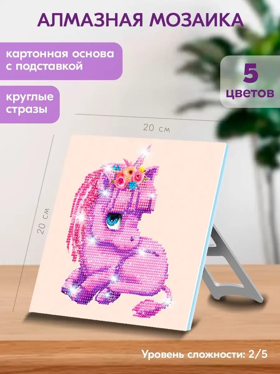 Картина стразами (алмазная мозаика) 20х20 см, Юнландия Единорожек, картон, 662431 интересное: