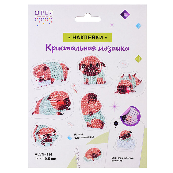 Купить Алмазная (кристальная) мозаика "фрея" наклейки 14 х 19.5 см "Мопсы" ALVN-114