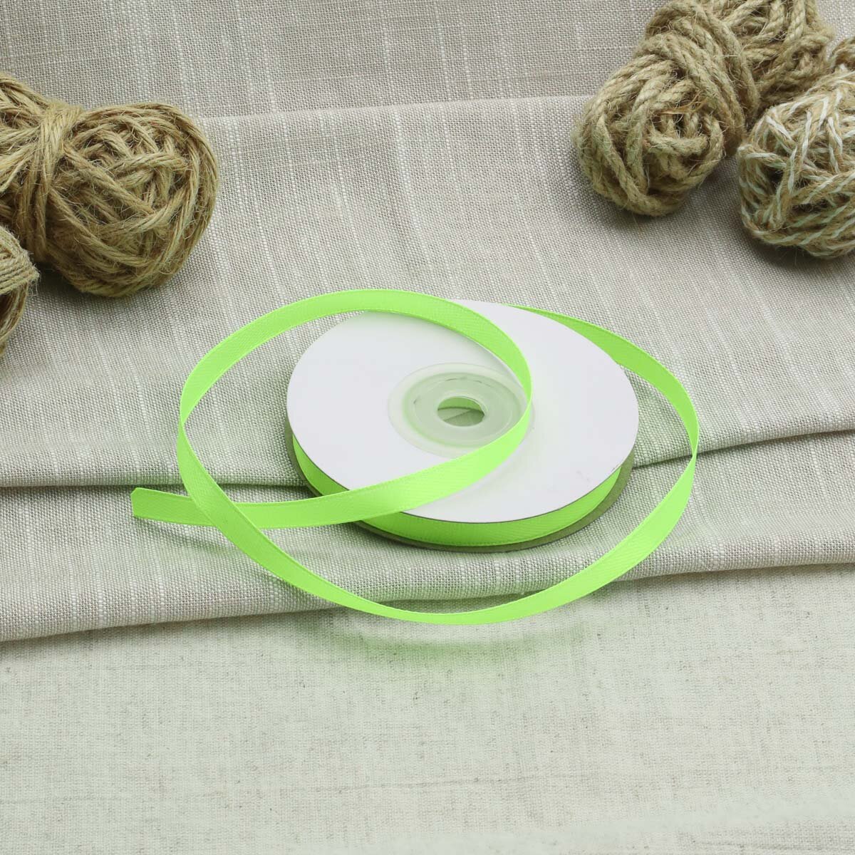 Лента атласная декоративная Айрис, 6мм*22,86м, полиэстер (106 травяной)