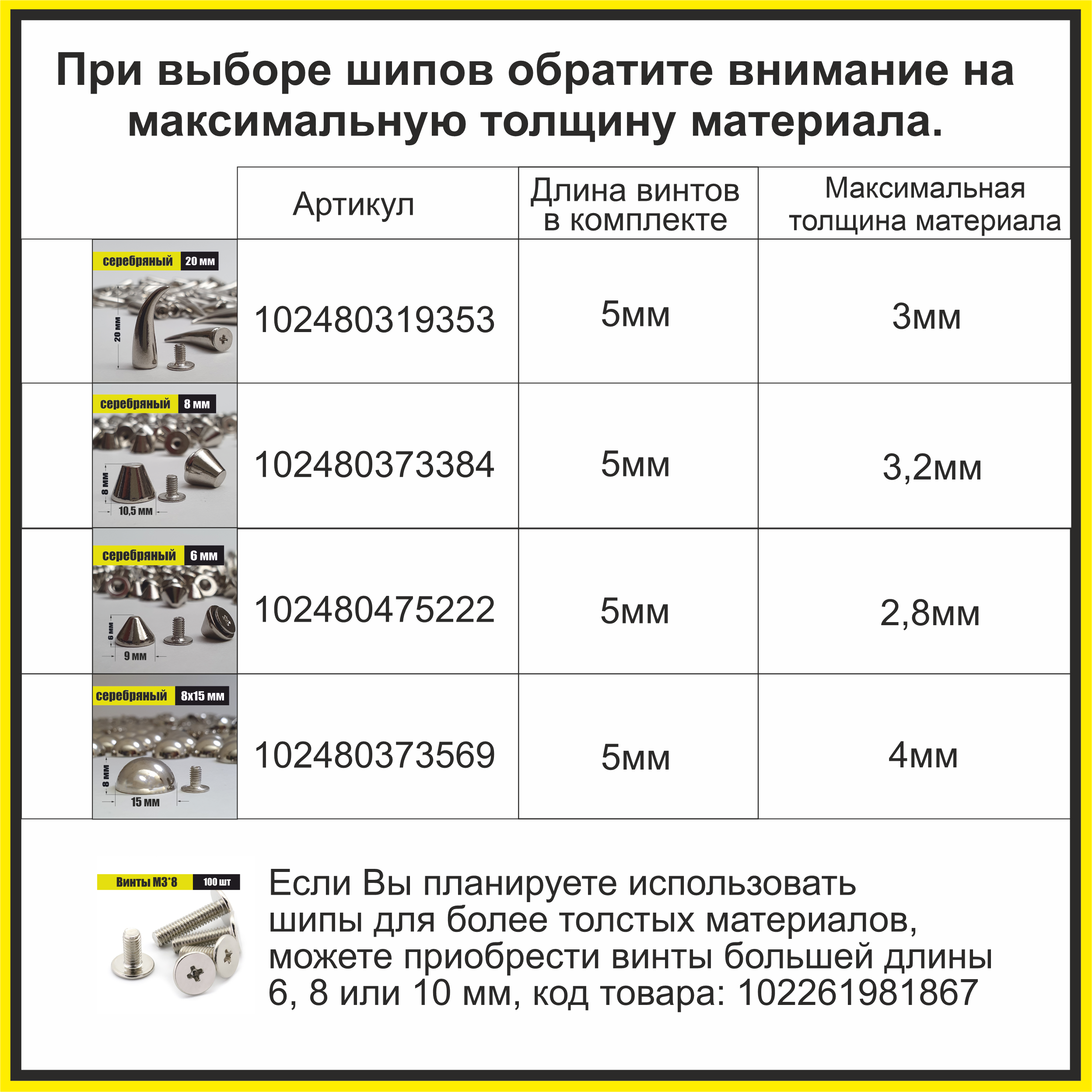 Декоративные шипы для одежды и аксессуаров (серебряные 100 шт)