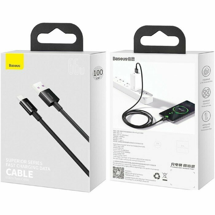 Baseus Кабель Baseus CATZS-01, Type-C - USB, 4 А, 40 Вт, быстрая зарядка, 1 м, черный интересное: