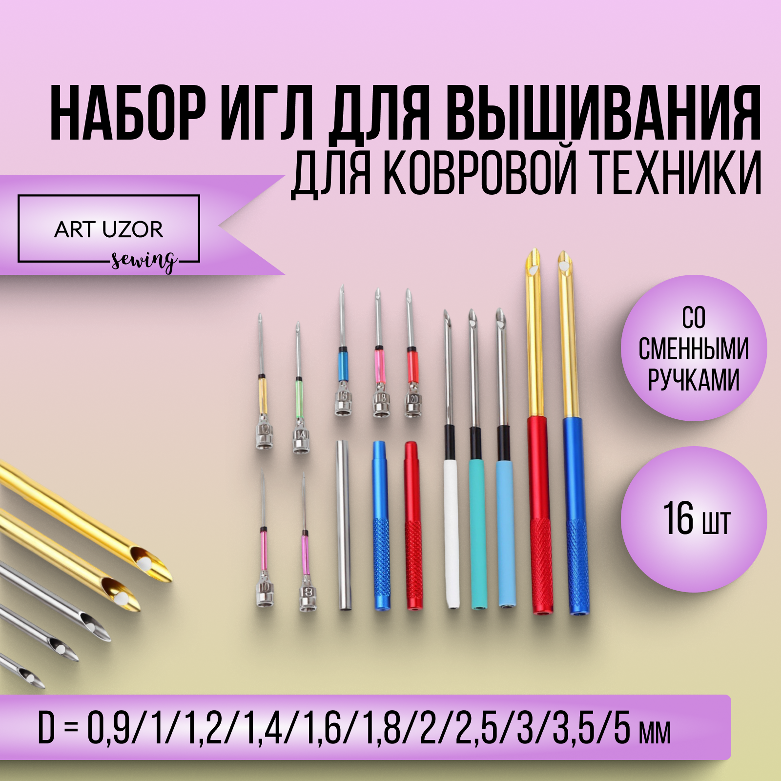 Купить Набор игл для вышивания по ковр технике d0,9/1/1,2/1,4/1,6/1,8/2/2,5/3/3,5/5мм в боксе АУ 9684219