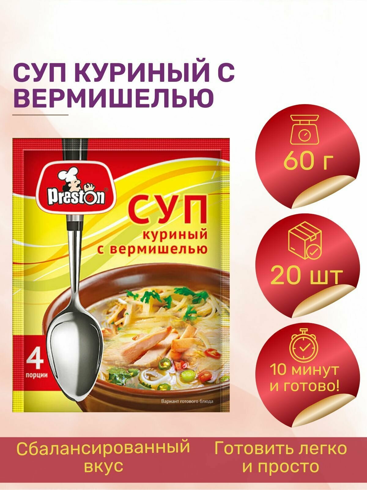 Суп куриный с вермишелью Preston 60 г., 10 шт.