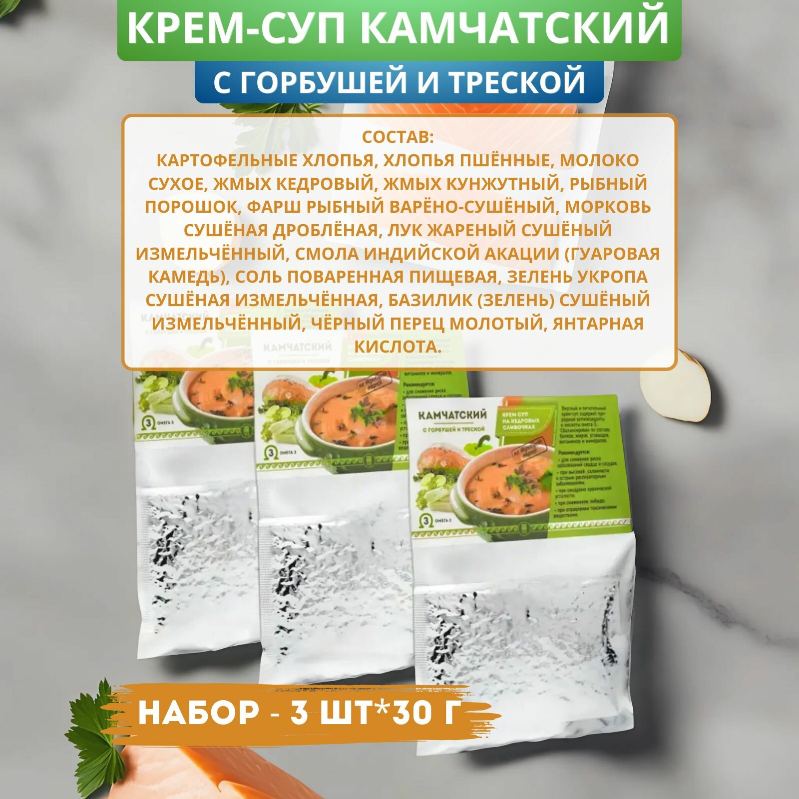 Крем-суп Камчатский с горбушей и треской для сердца и сосудов, 30 г - 3 штуки