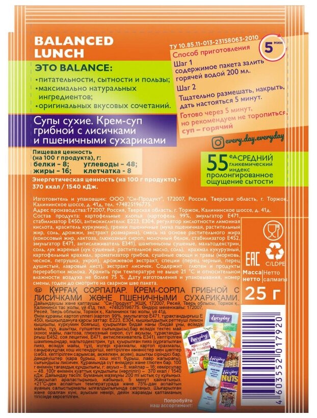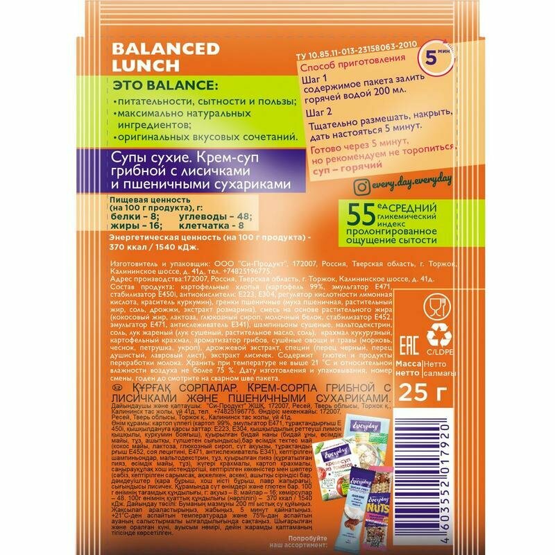 Крем суп грибной с сухариками Everyday, 25 гр. - шоубокс 15 шт. интересное:
