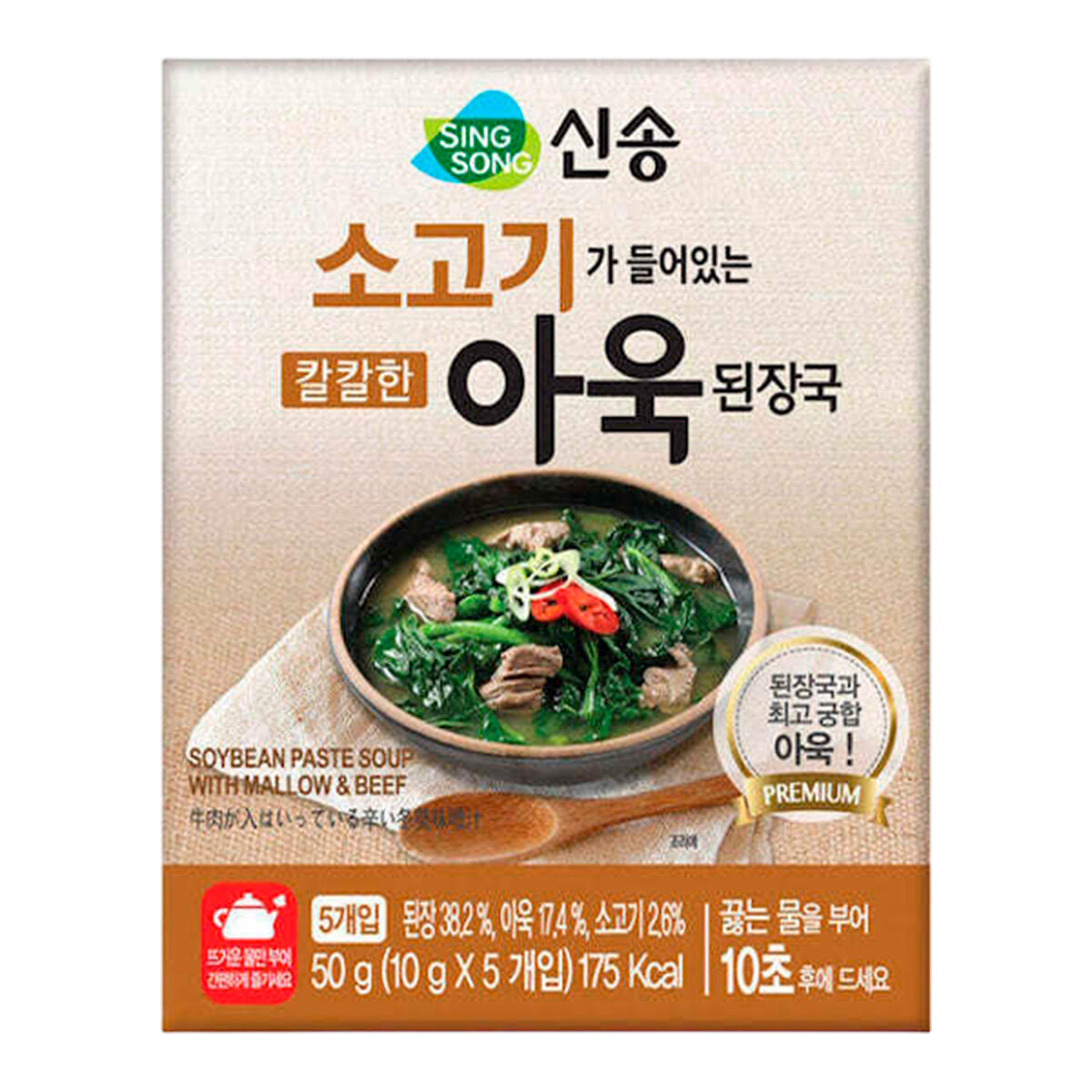 | Состав | Соевая паста (соя, пшеничная мука, рафинированная соль, пшеничный рис, ферментированные соевые бобы), зеленый лук, красный перец чхонъян, порошок деревенского экстракта, декстрин, белый сахар, сухая сыворотка, рафинированная соль, паста из говяжьего бульона, говядина, кочхуджан, лук, картофельный крахмал, рисовая мука, декстрин, чеснок, L-глутамат натрия, приправа, усилитель вкуса, ксантановая камедь. |