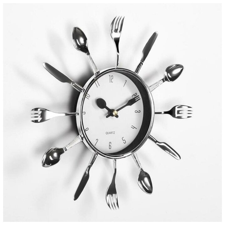 Часы настенные, серия: Кухня, "Вилки, ложки, поварешки", плавный ход, 25 х 25 см, d-11 см 831075 интересное: