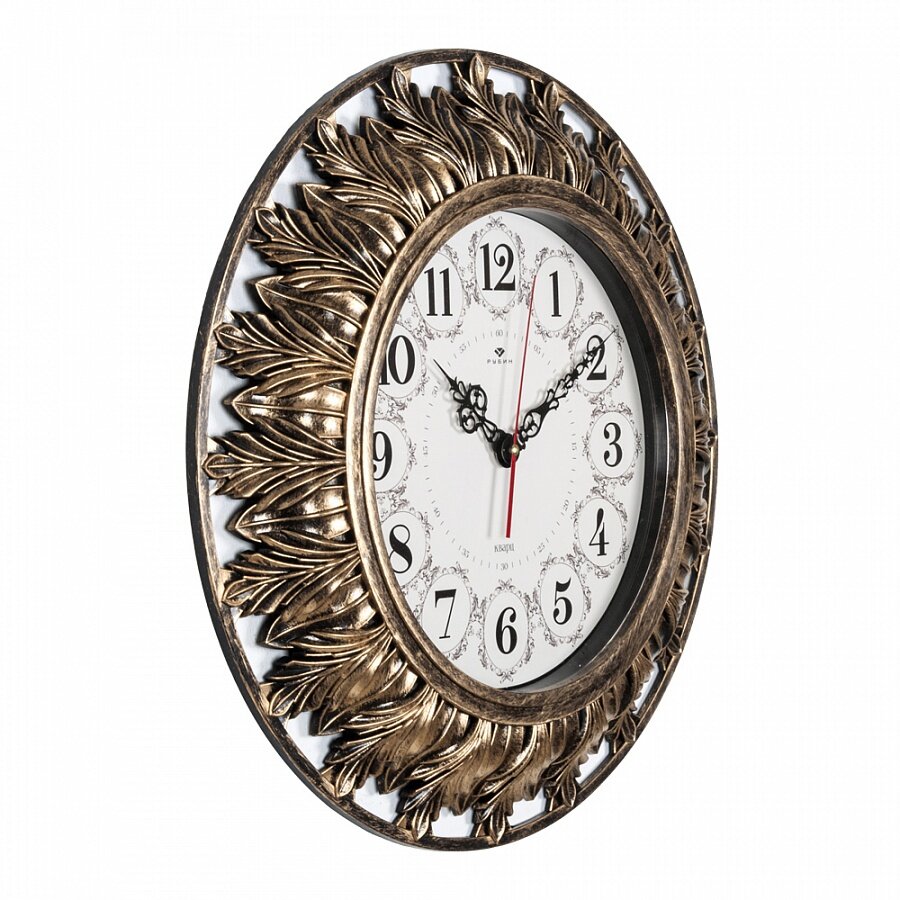 Часы настенные Рубин круглые d 51 см, корпус черный с золотом "Классика" (5030-001) интересное: