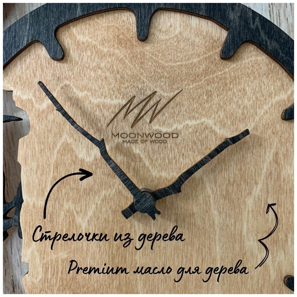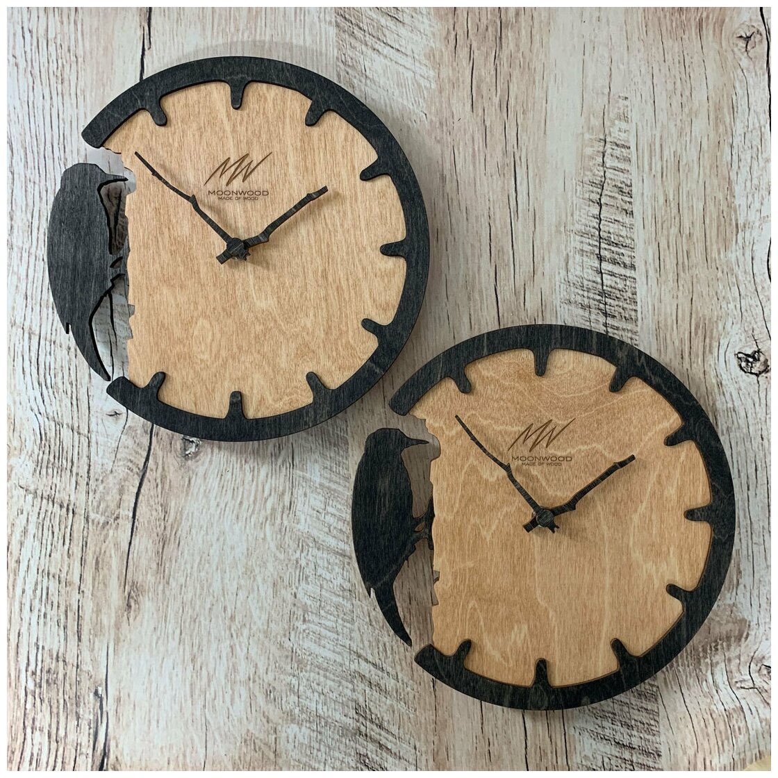 Настенные часы Moonwood "Скандинавский дятел" из дерева интересное: