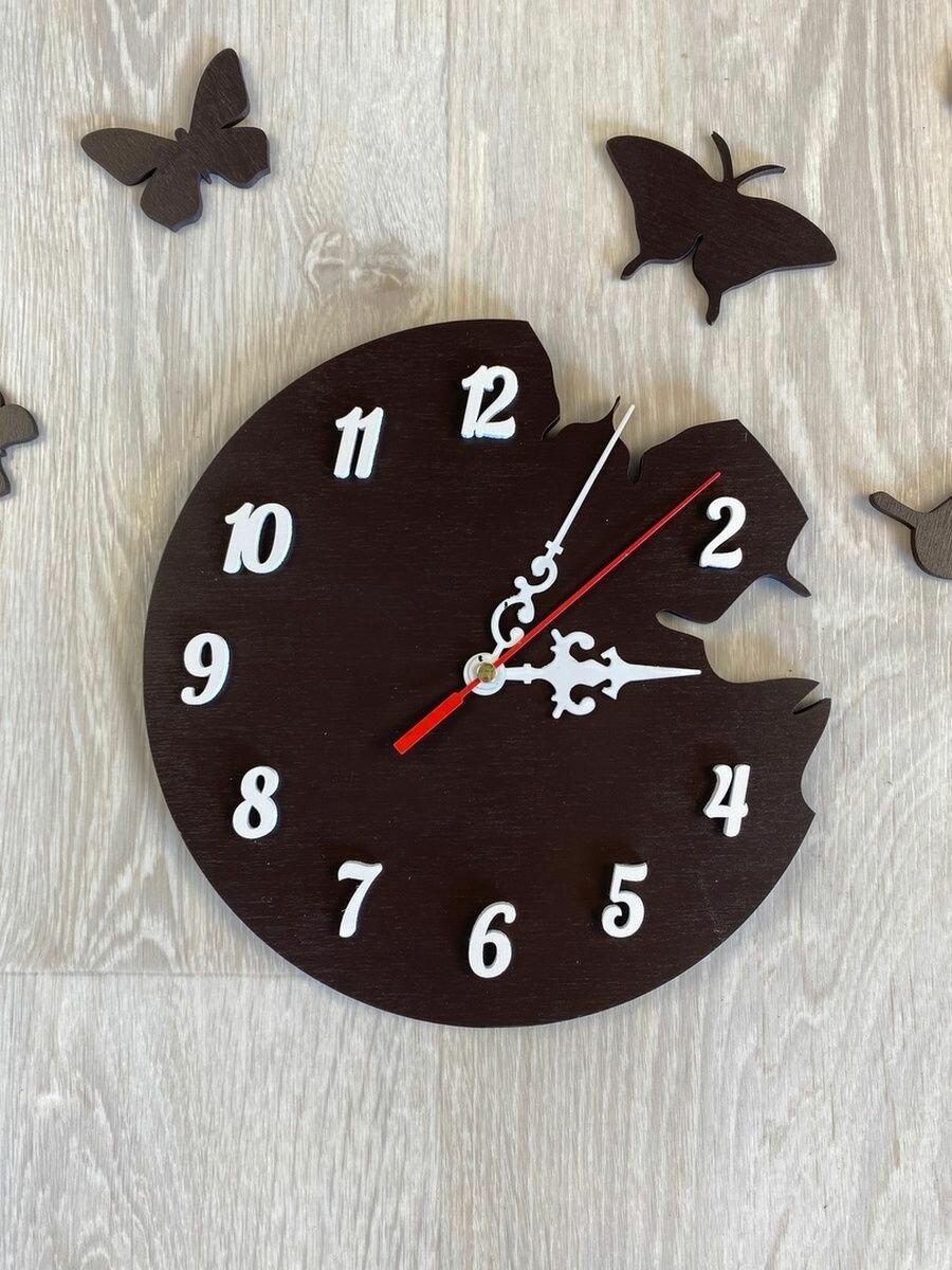 | Комплектация | Часы настенные; декоративные бабочки 11 шт.; металлические стрелки; бесшумный часовой механизм |