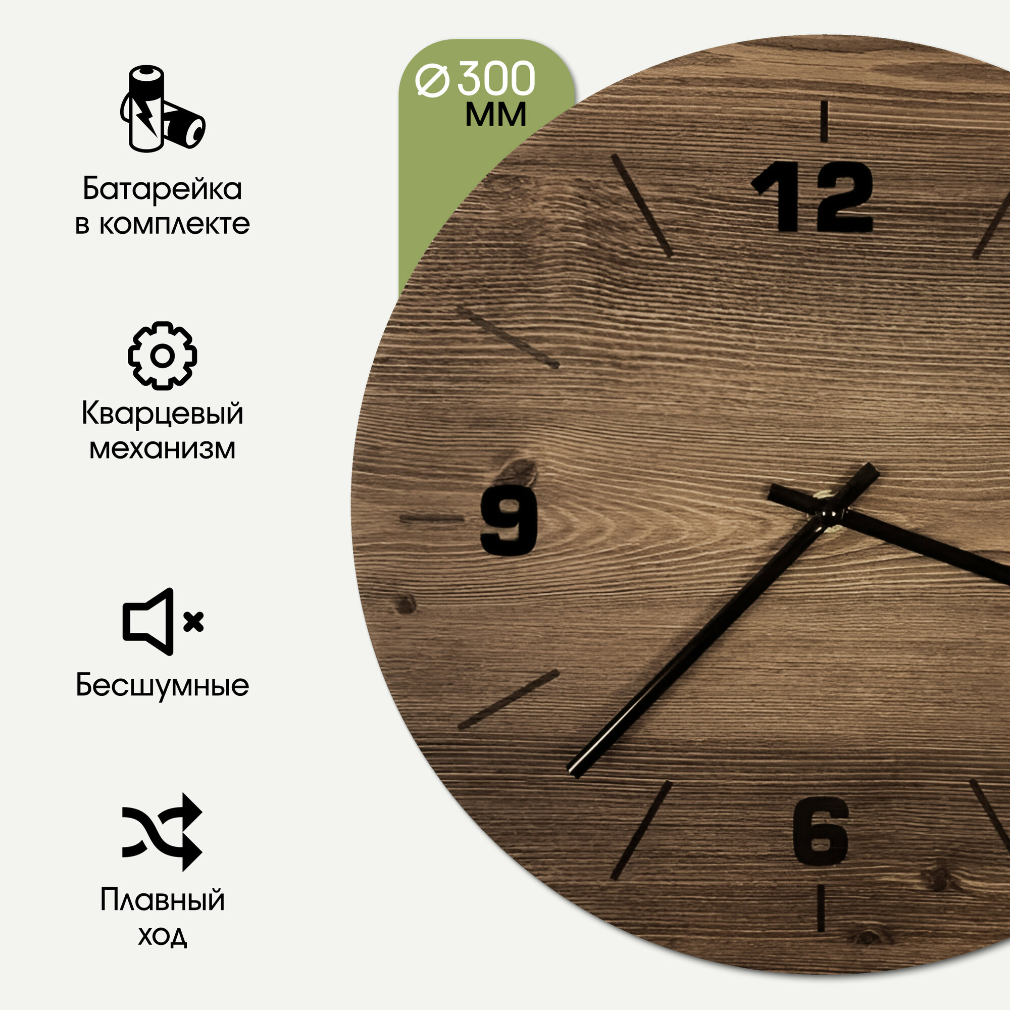 Часы круглые FORMA, орех кантри, 30х30см, бесшумные интересное: