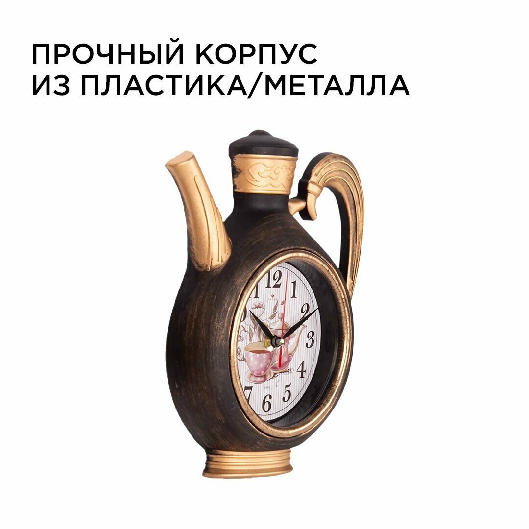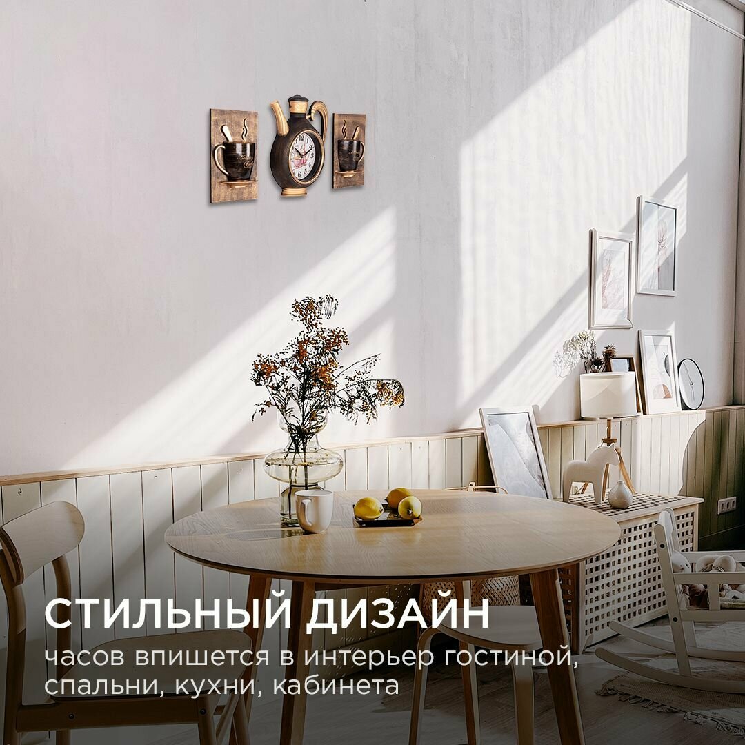 Купить Часы настенные комплект Рубин Joy чайник + 2 чашки черный с медью для кухни с плавным ходом арабскими цифрами корпус пластик металл минеральное стекло работа от пальчиковой батарейки АА ширина 53 см