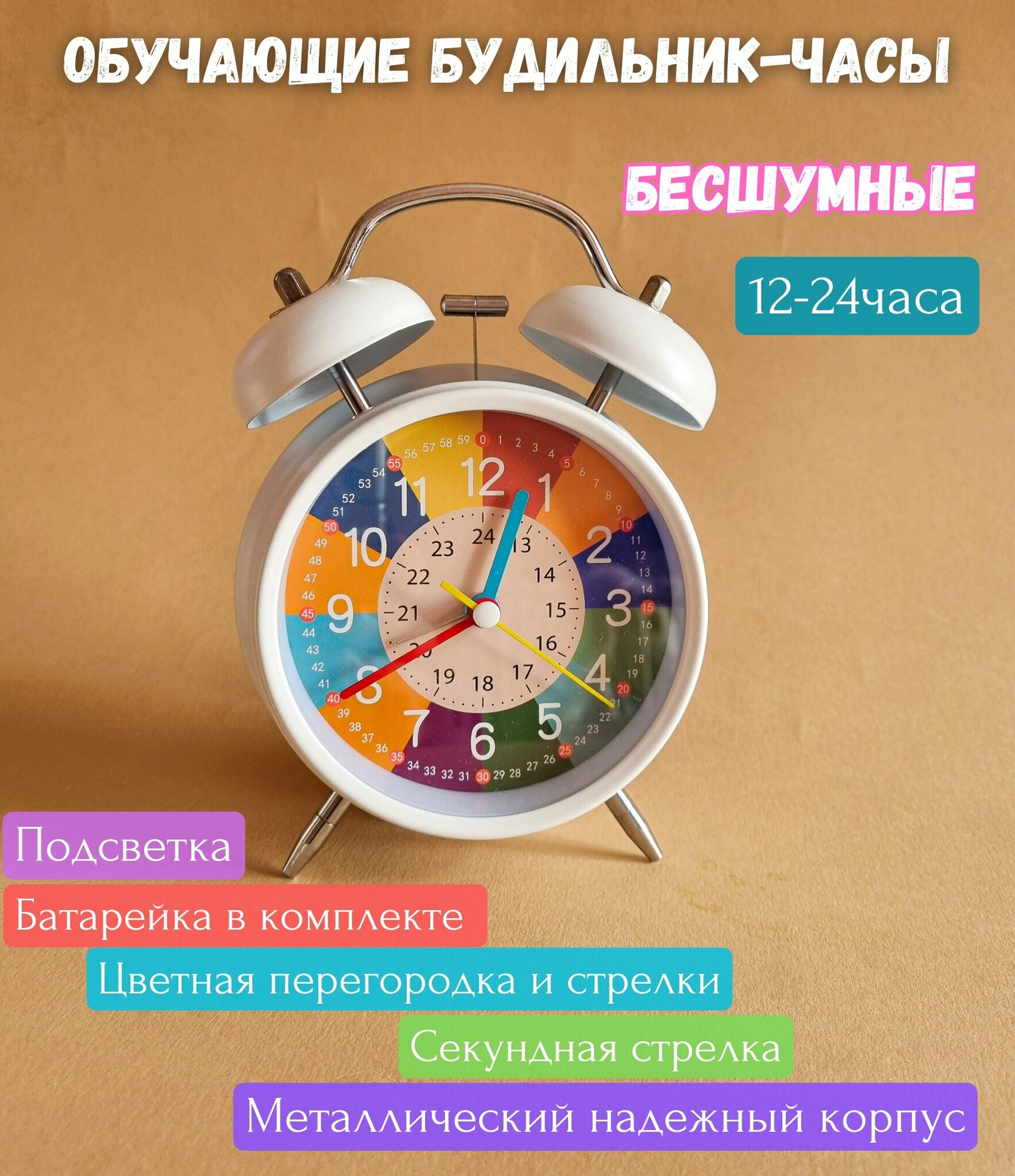 Ниже Вы можете прочитать отзывы на Детский обучающий будильник-часы с подсветкой бесшумная секундная стрелка, ознакомится с подробными характеристиками, посмотреть интересные обзоры и фотографии на Детский обучающий будильник-часы с подсветкой бесшумная секундная стрелка.