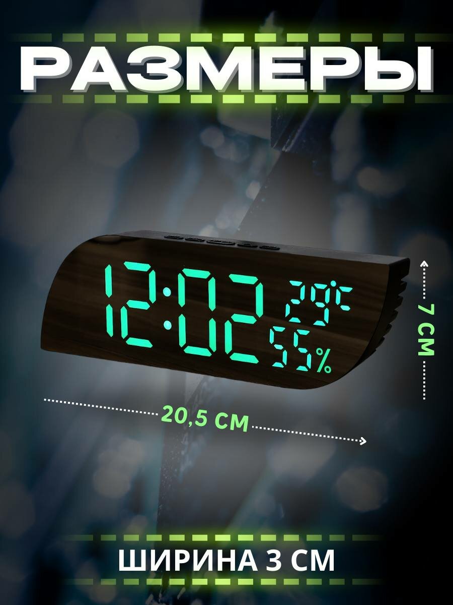 Часы настольные электронные с проекцией: будильник, термометр, календарь, 19.6 х 6.5 см