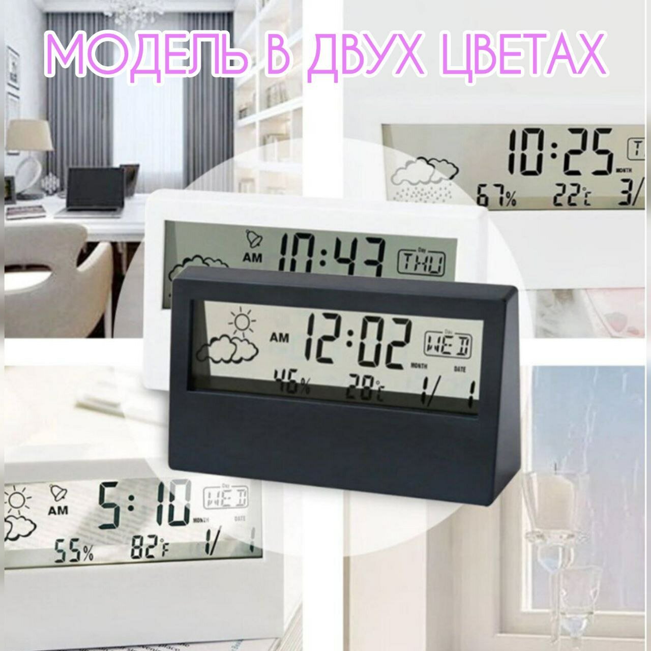 Цифровые часы, многофункциональный дисплей температуры, бесшумный современный Настольный ЖК Электрический будильник для офиса WHITE интересное: