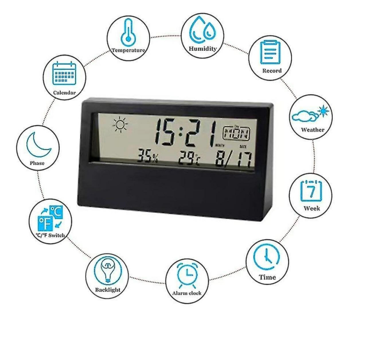 Ниже Вы можете прочитать отзывы на Цифровые часы, многофункциональный дисплей температуры, бесшумный современный Настольный ЖК Электрический будильник для офиса BLACK, ознакомится с подробными характеристиками, посмотреть интересные обзоры и фотографии на Цифровые часы, многофункциональный дисплей температуры, бесшумный современный Настольный ЖК Электрический будильник для офиса BLACK.