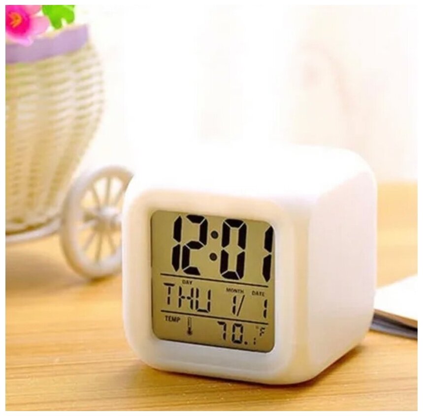 Купить Часы-будильник "Кубик-хамелеон" с разноцветной подсветкой