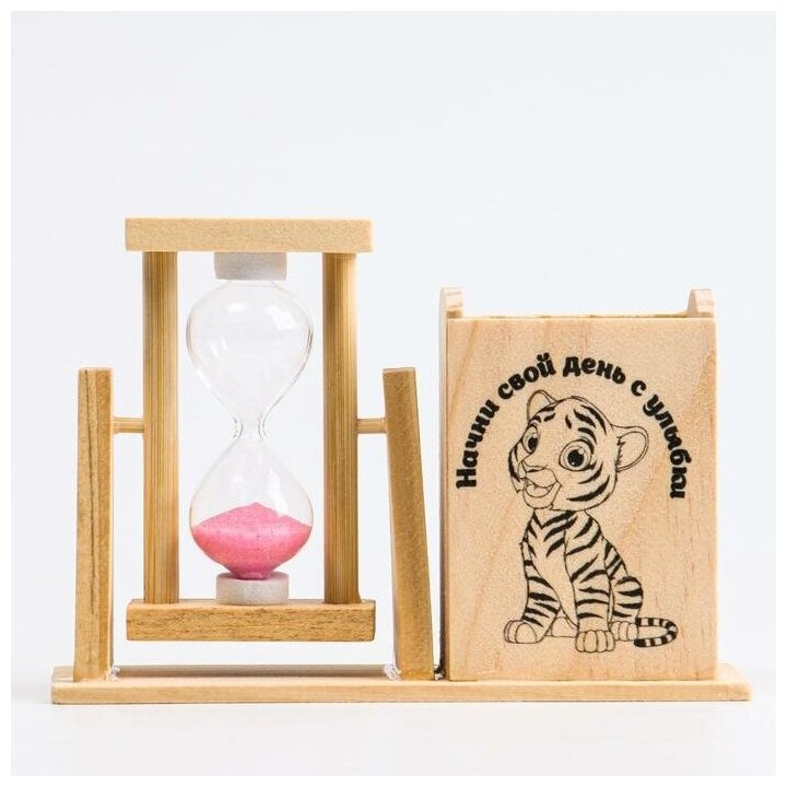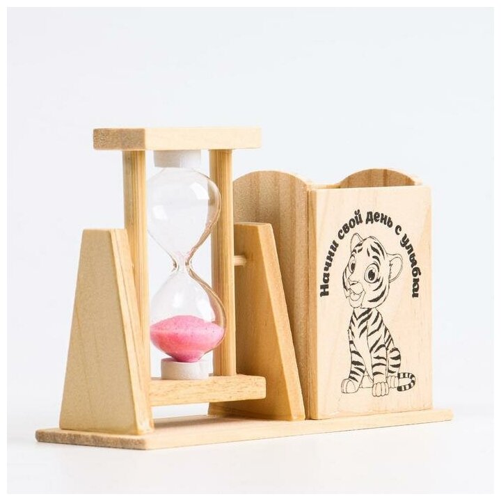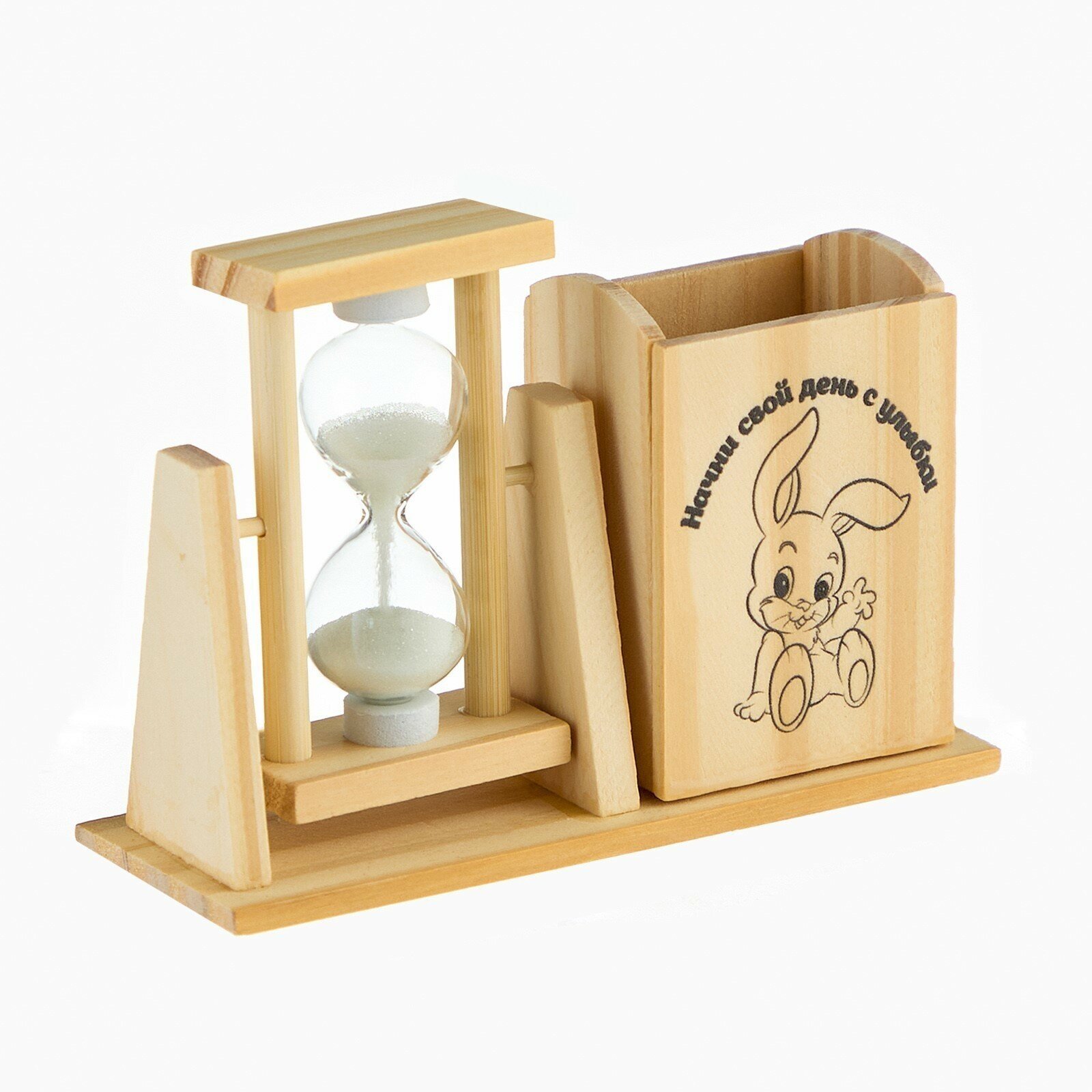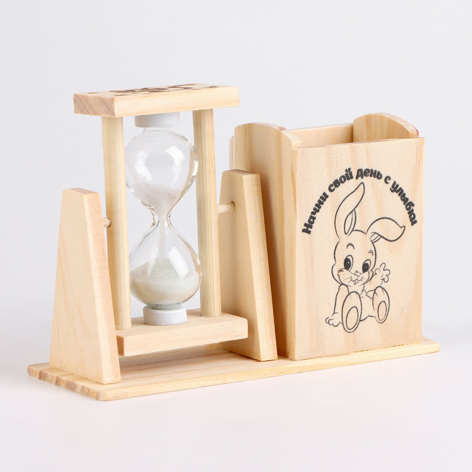 Песочные часы "Начни свой день с улыбки", с органайзером для канцелярии, 13.5 х 9.5 х 5 см интересное: