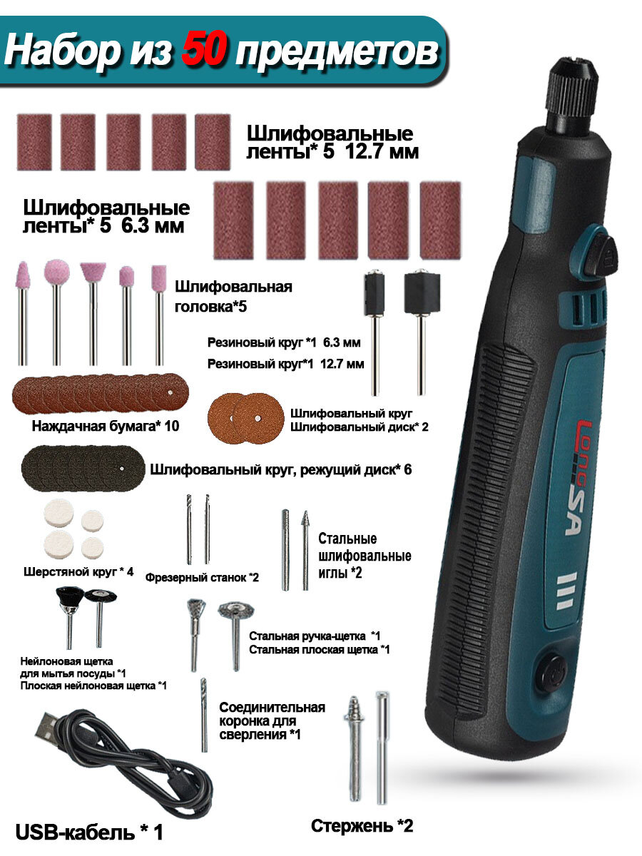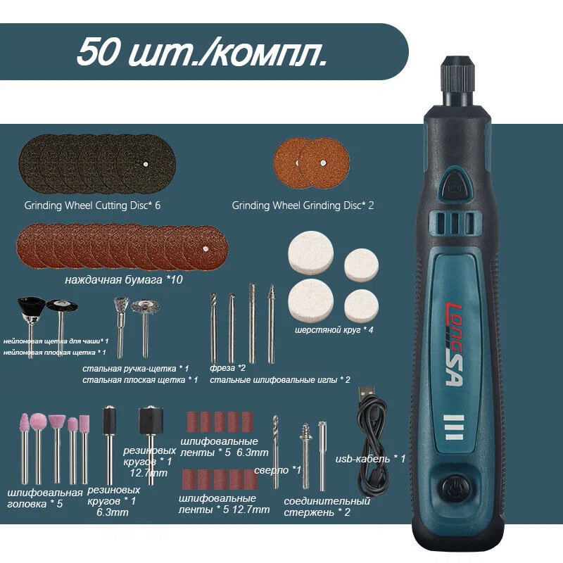 50шт Мини-шлифовальная машина Роторный инструмент Гравер Ручка Перезаряжаемая интересное:
