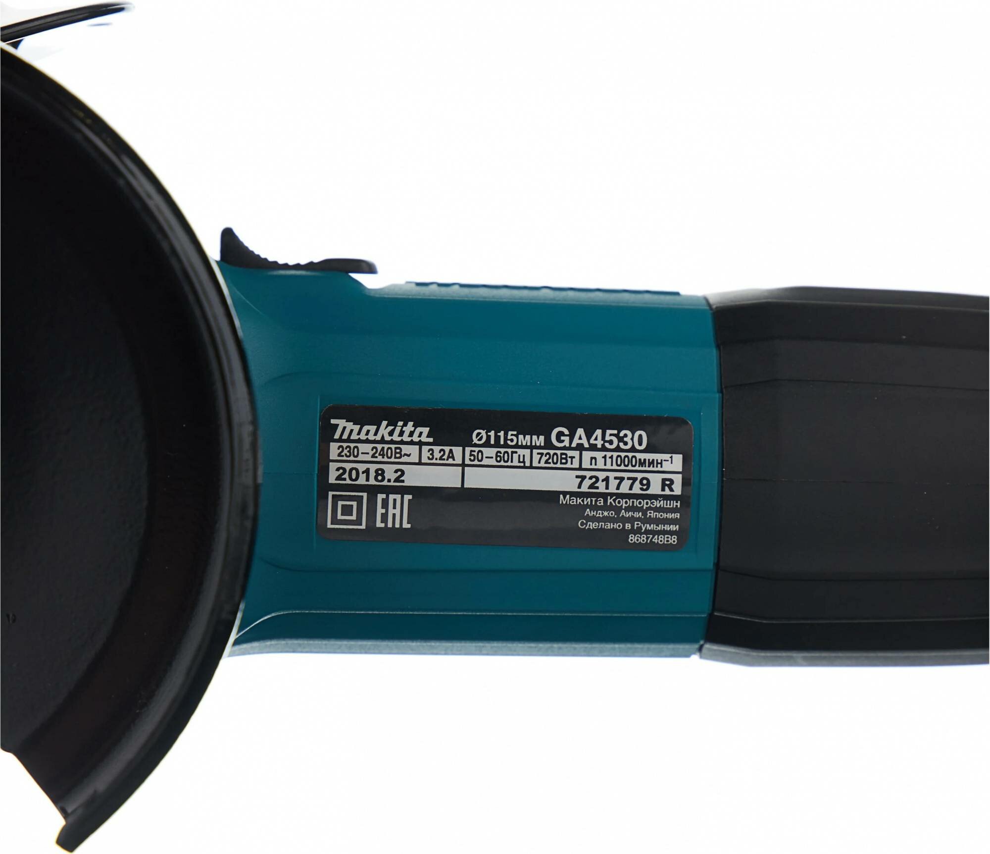 Угловая шлифовальная машина Makita 720 Вт, 115 мм, 11000 об/мин, GA4530R