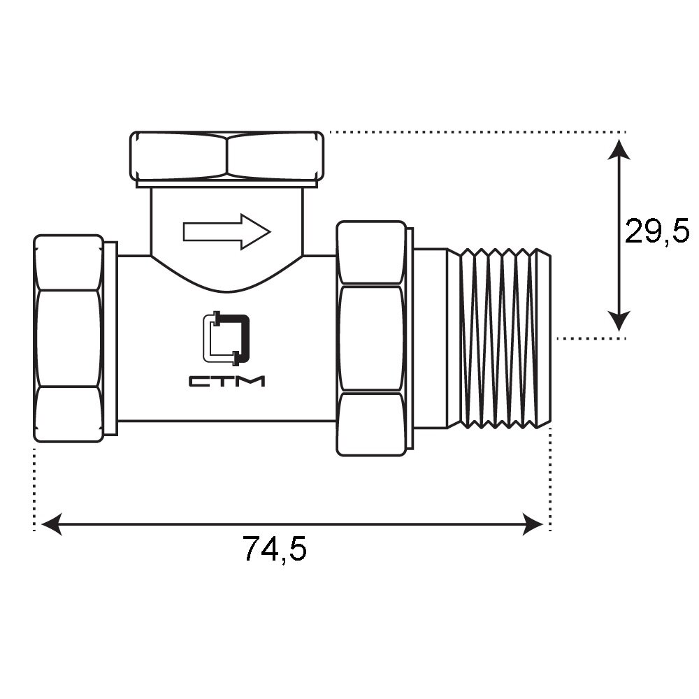 Запорный клапан для радиатора угловой 1/2" CTM термо