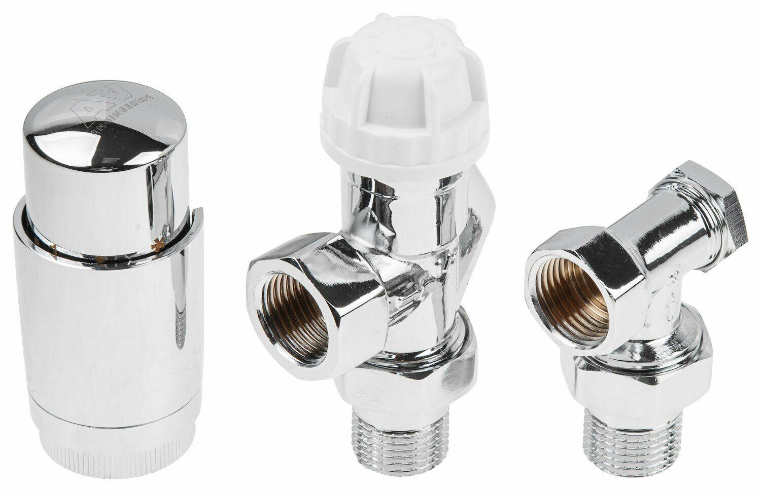 Купить Монтажный комплект для установки радиатора отопления AV Engineering Хром DN 15x1/2" осевой - Термостатический клапан, Термостатическая головка, Клапан запорный