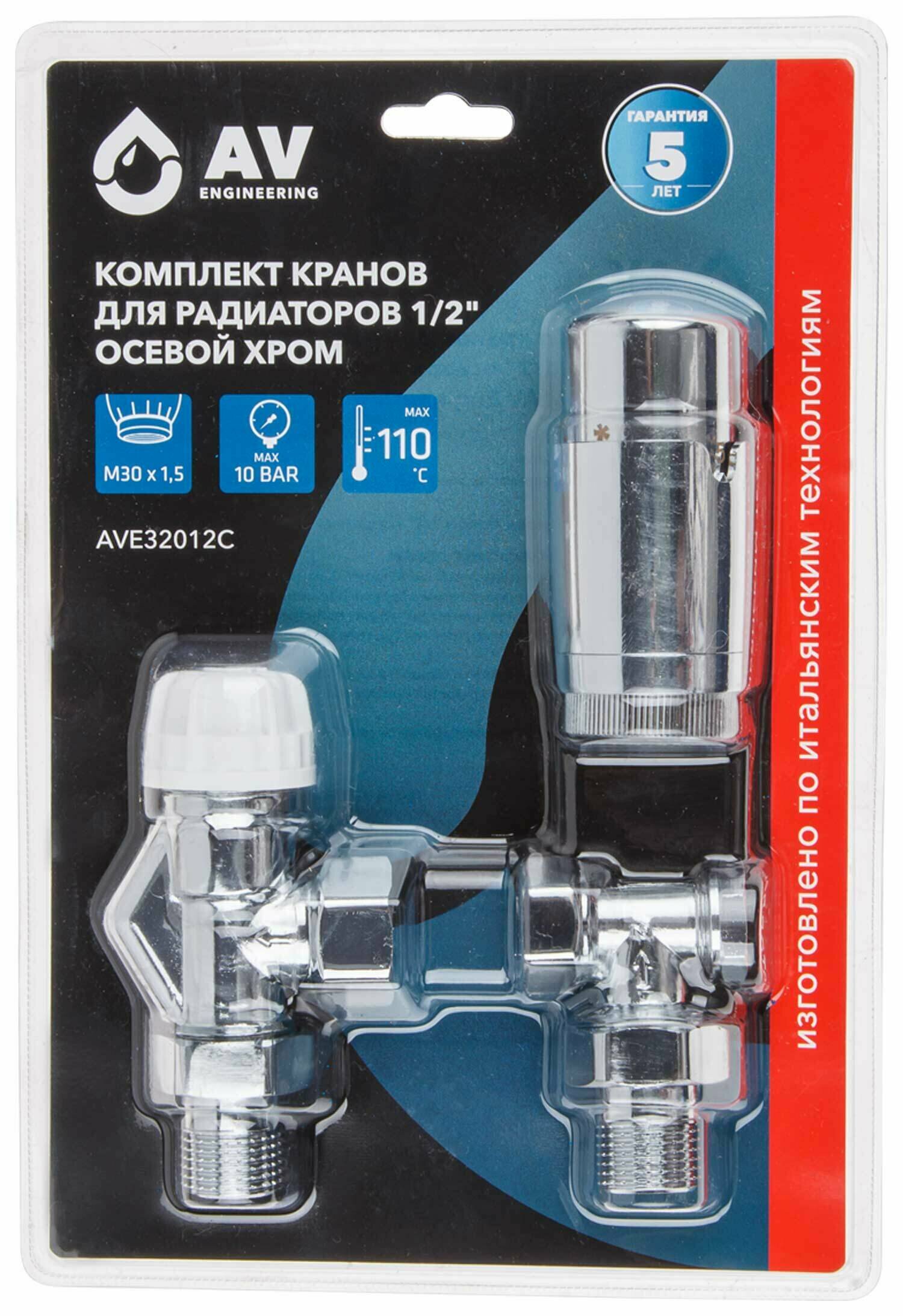 Комплект кранов для радиаторов отопления 1/2 осевой хром AV ENGINEERING (AVE32012C)