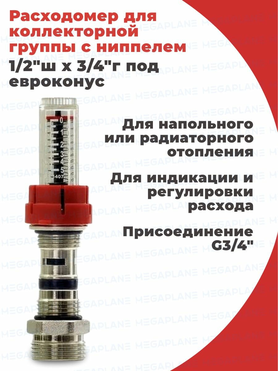 Расходомер для коллектора 1/2"НР с ниппелем 1/2"НР х 3/4"НР под евроконус TIM арт. M309-3