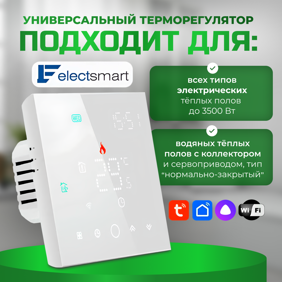 Купить EST-210W-YM Терморегулятор для теплого пола электрического и водяного, универсальный с датчиком, программируемый термостат с WiFi, голосовое управление Яндекс Алиса, цвет: белый. 3500 Вт, ELECTSMART
