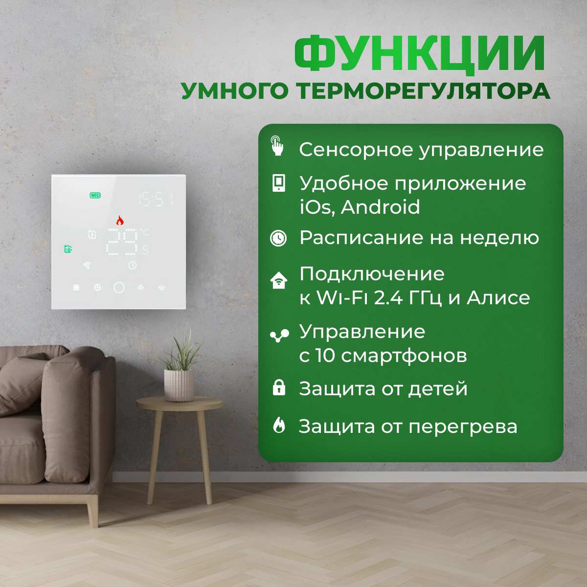 | Регулирование температуры теплого пола | есть |