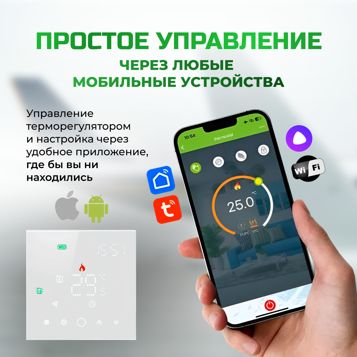 СохранитьEST-210W-YM Терморегулятор для теплого пола электрического и водяного, универсальный с датчиком, программируемый термостат с WiFi, голосовое управление Яндекс Алиса, цвет: белый. 3500 Вт, ELECTSMART интересное: