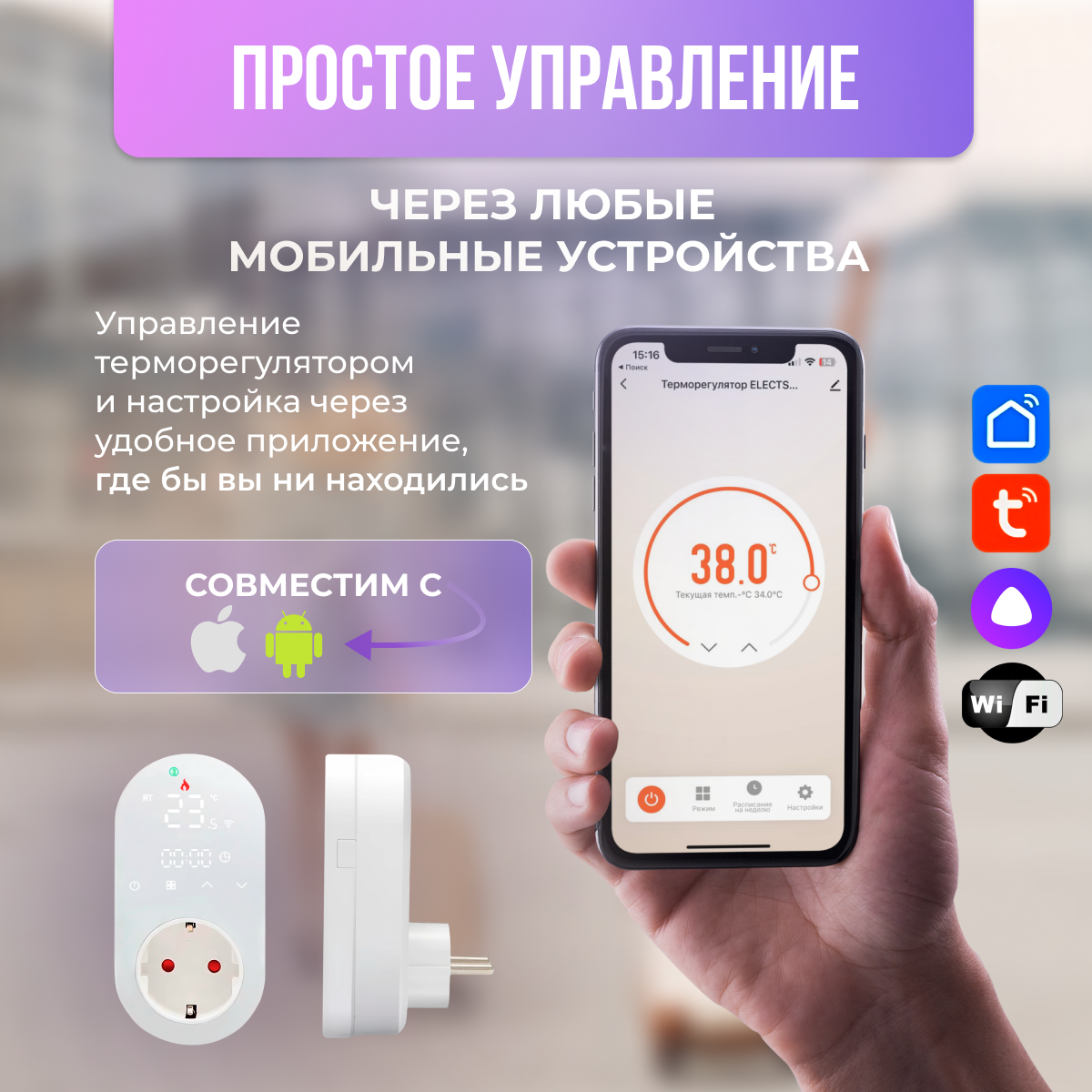 E-11-WiFi-YM Терморегулятор/термостат в розетку для кондиционера, обогревателя. Белый программируемый, сенсорный, с датчиком температуры. Голосовое управление Яндекс Алиса, Smart Life. ELECTSMART интересное: