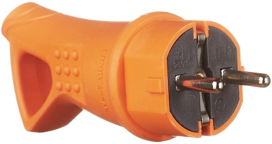 Вилка электрическая 1ф 16А 250В IP44 с заземл. с ушком каучук оранж. (еврослот) UNIVersal 3030 интересное: