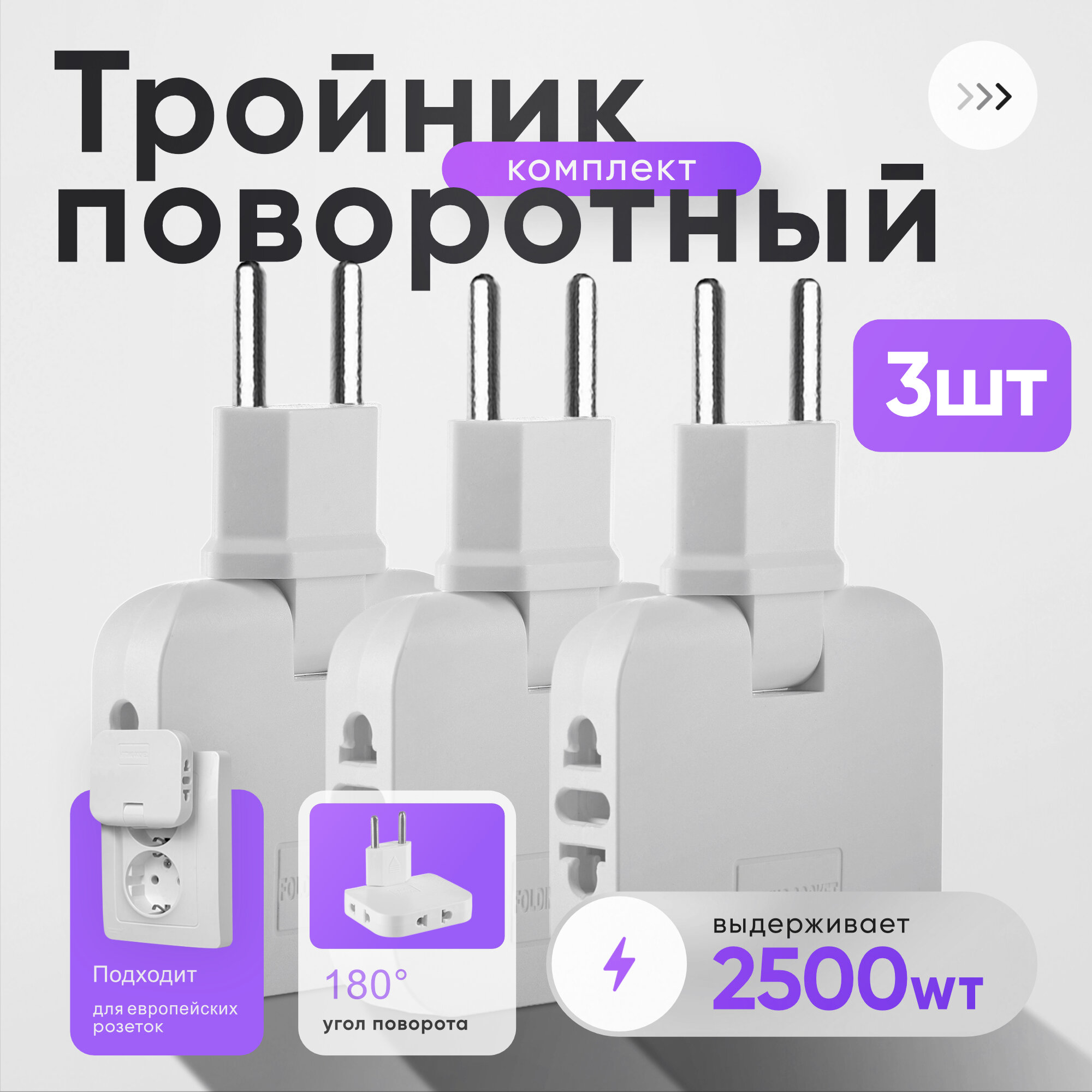 Тройник в розетку электрический плоский поворотный 3 штуки интересное: