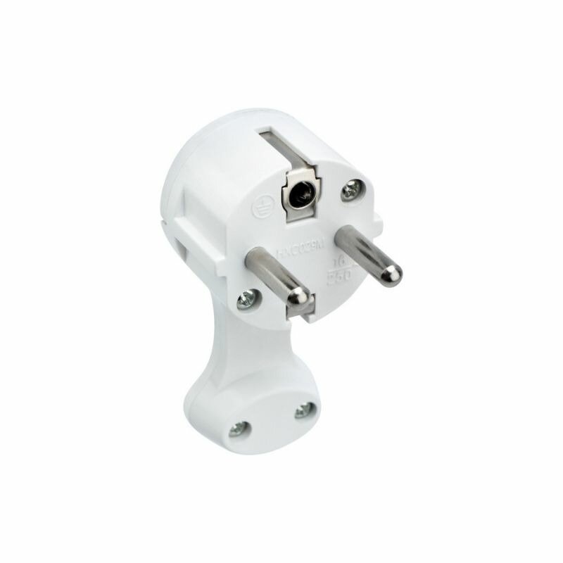 Евровилка плоская угловая REXANT 16 А, розетка за шкаф, с заземляющим контактом, белая