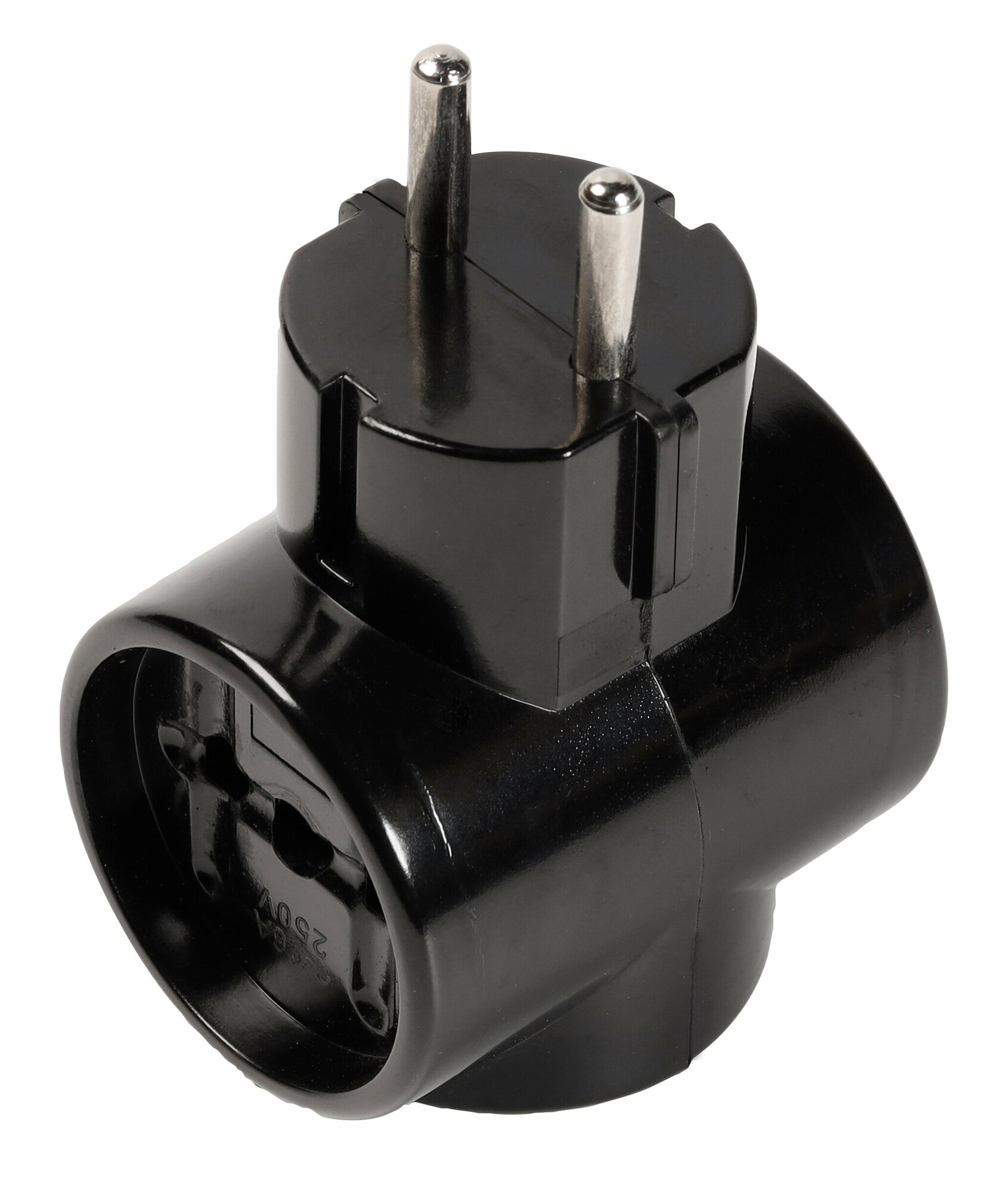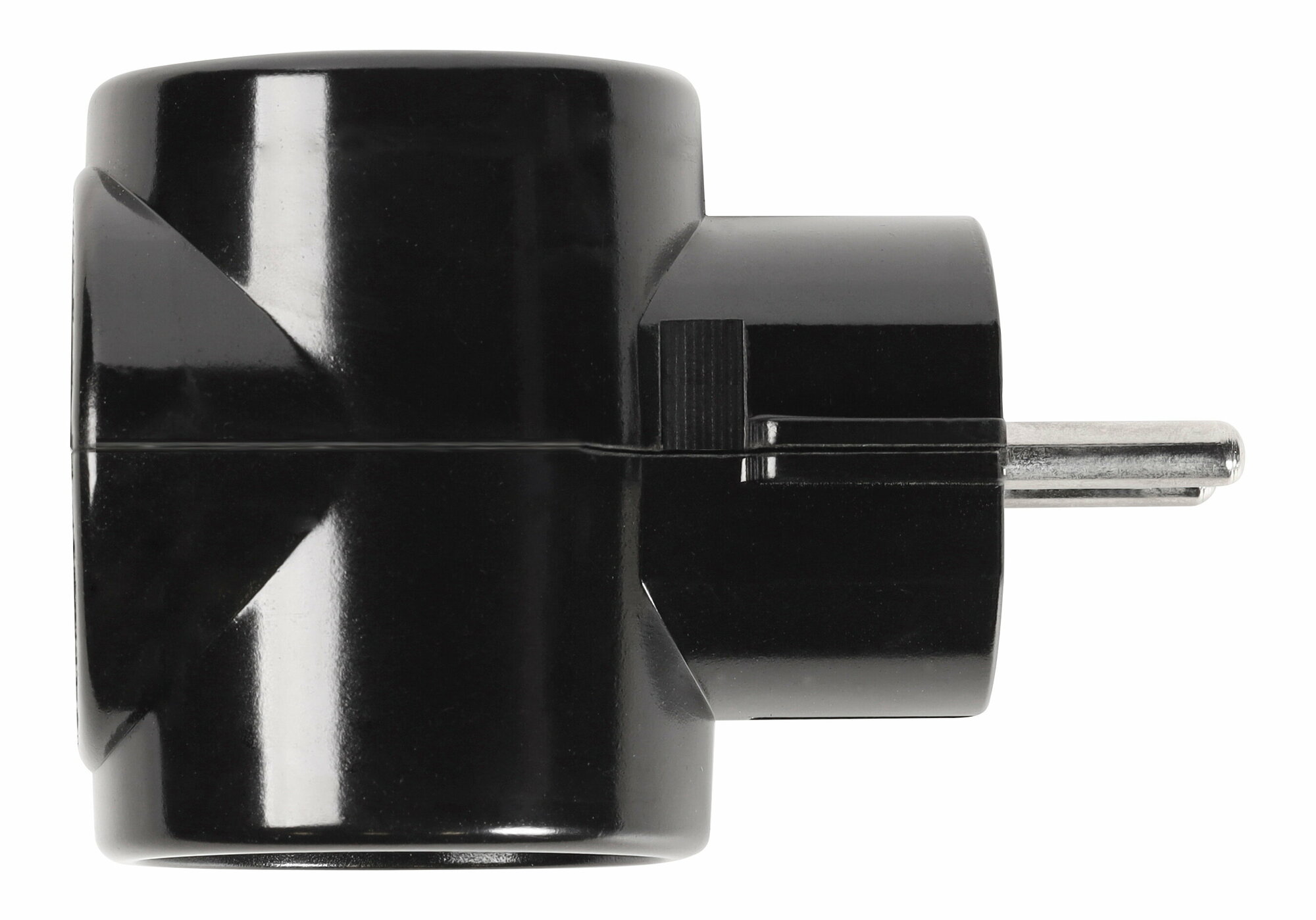 Купить Разветвитель 3 гнезда бакелитовый с заземлением 16А 250B, черный, Smartbuy