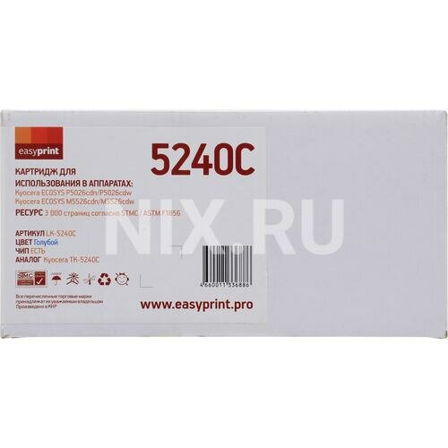 Тонер-картридж EasyPrint LK-5240C для Kyocera ECOSYS Р5026cdn/Р5026cdw/M5526cdn/M5526cdw (3000 стр.) голубой, с чипом