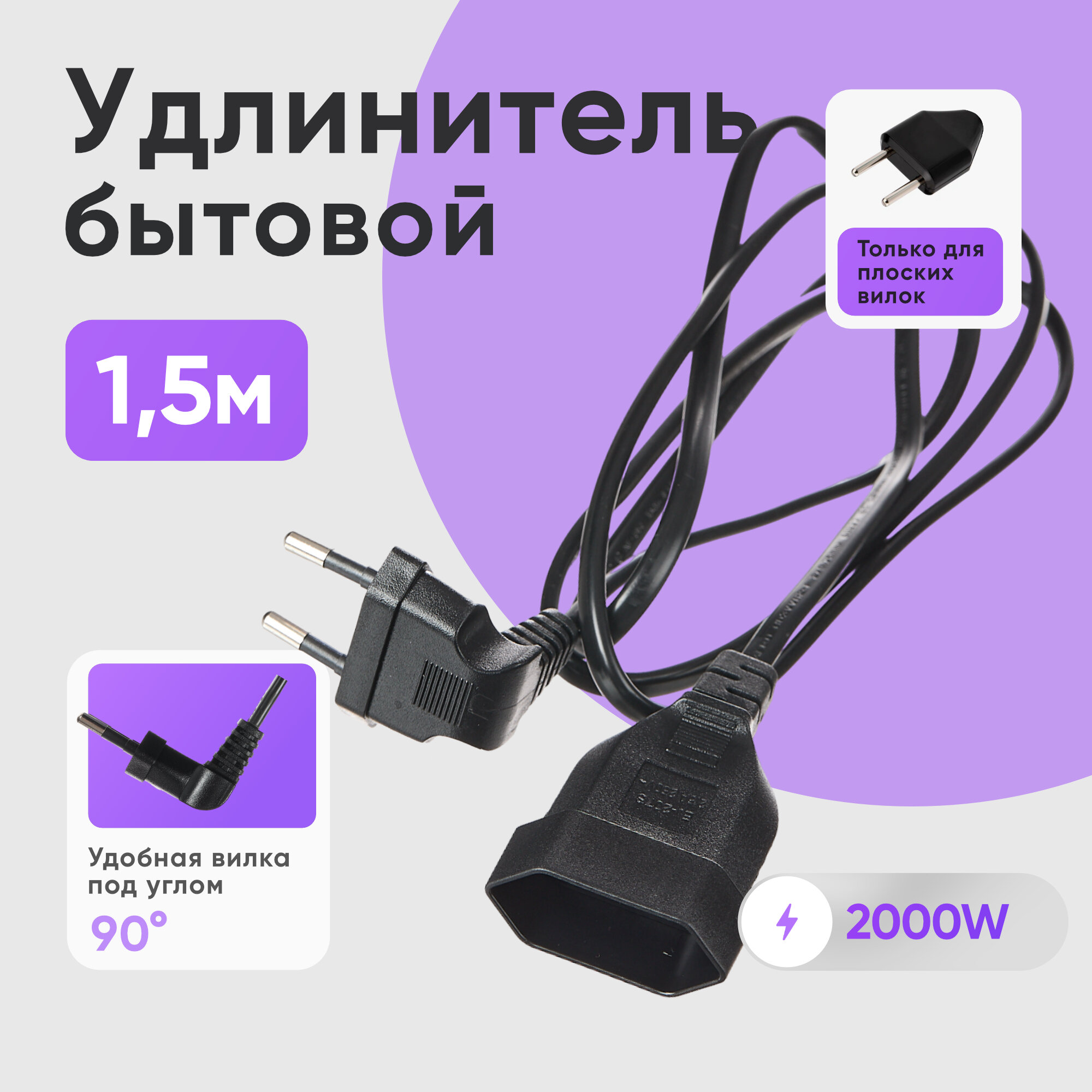 Шнур удлинитель электрический бытовой 1,5 метра чёрный интересное: