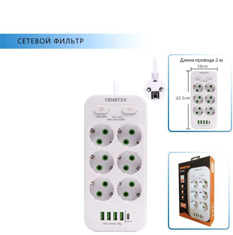 | Дополнительная информация | Удлинитель сетевой фильтр с USB зарядкой |