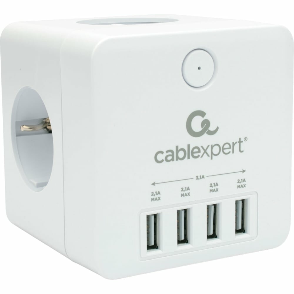 Купить Сетевой фильтр Cablexpert Cube, 4 розетки, 4хUSB, белый, коробка