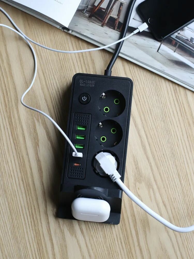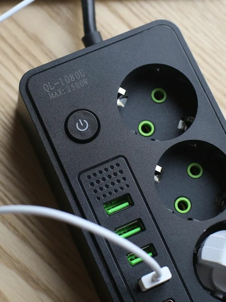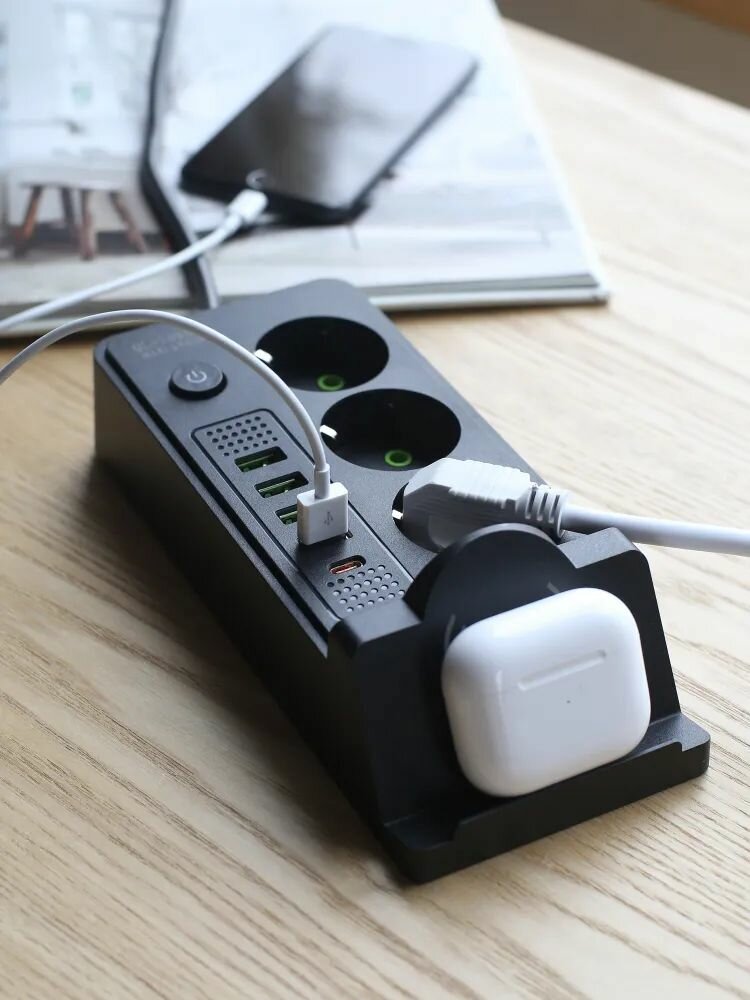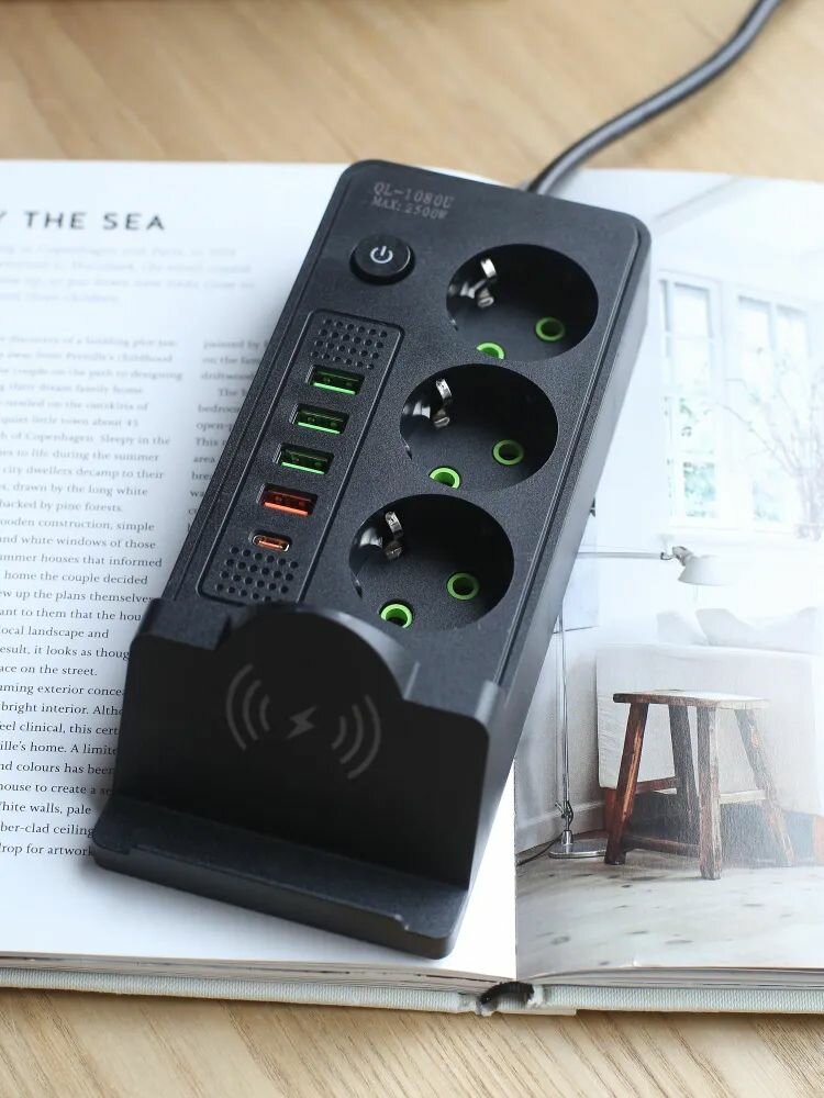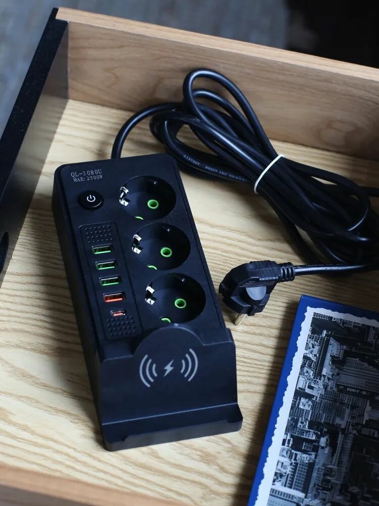 Удлинитель сетевой фильтр с заземлением с беспроводной зарядкой интересное: