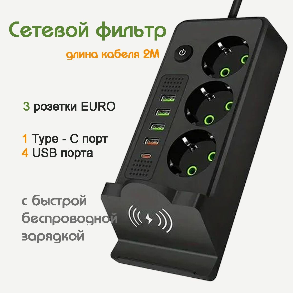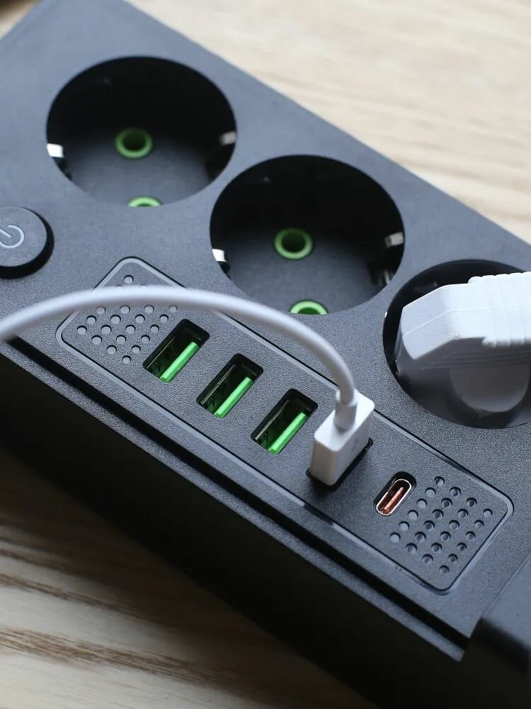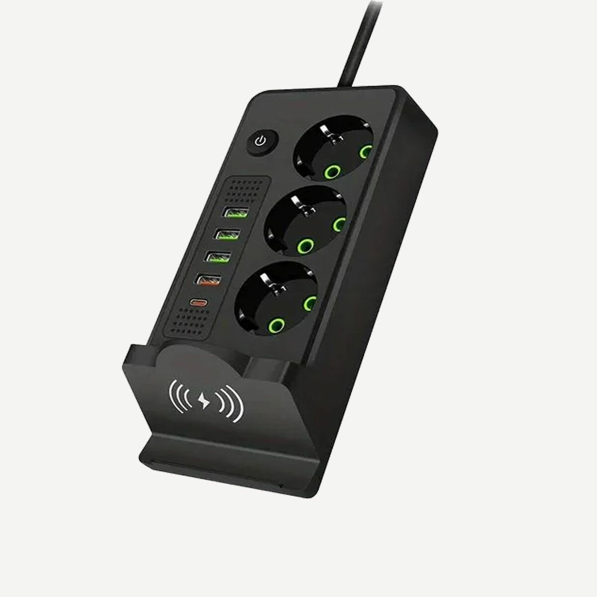Удлинитель сетевой фильтр с заземлением с беспроводной зарядкой интересное: