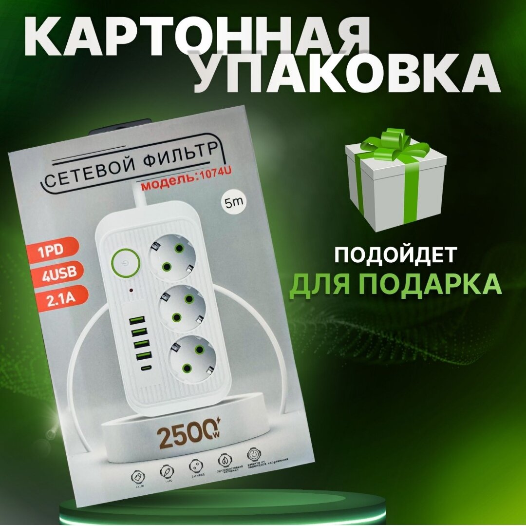 СохранитьУдлинитель сетевой (фильтр) 5 метров 3 розетки с 4 USB и 1 Type-C портами и кнопкой черный интересное: