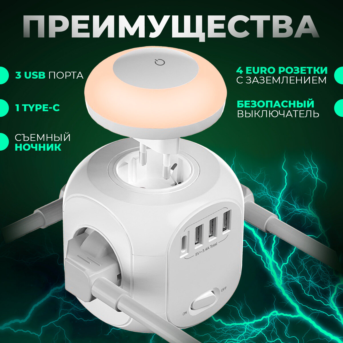 Удлинитель сетевой с USB и ночник 1.8м интересное: