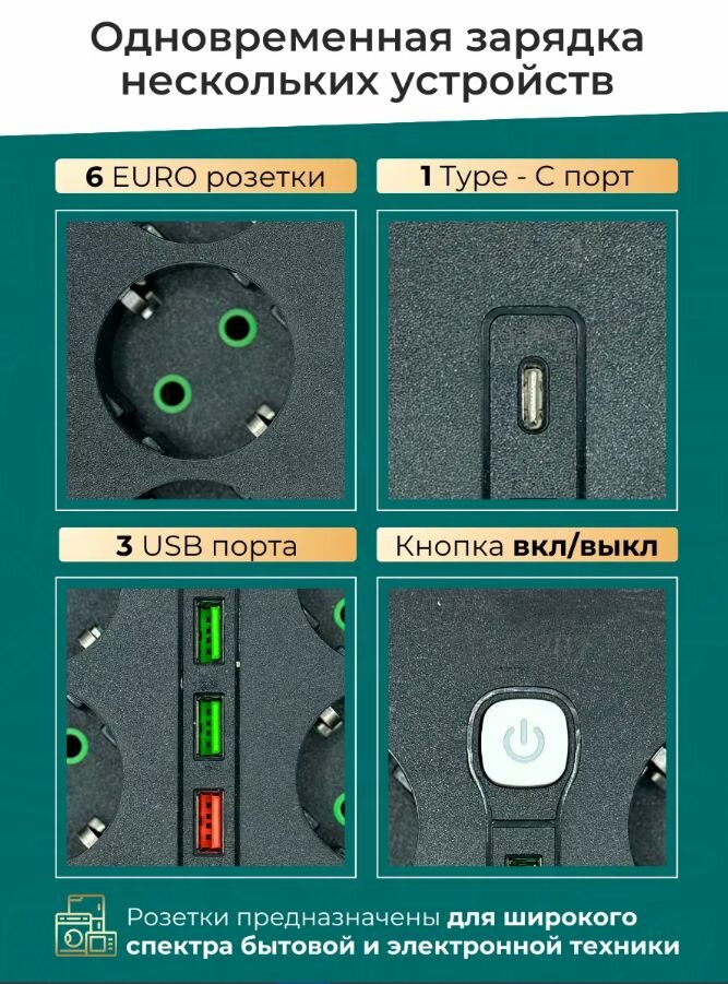 | Комплектация | usb удлинитель с 6 евро розетками с предохранителем и заземлением |