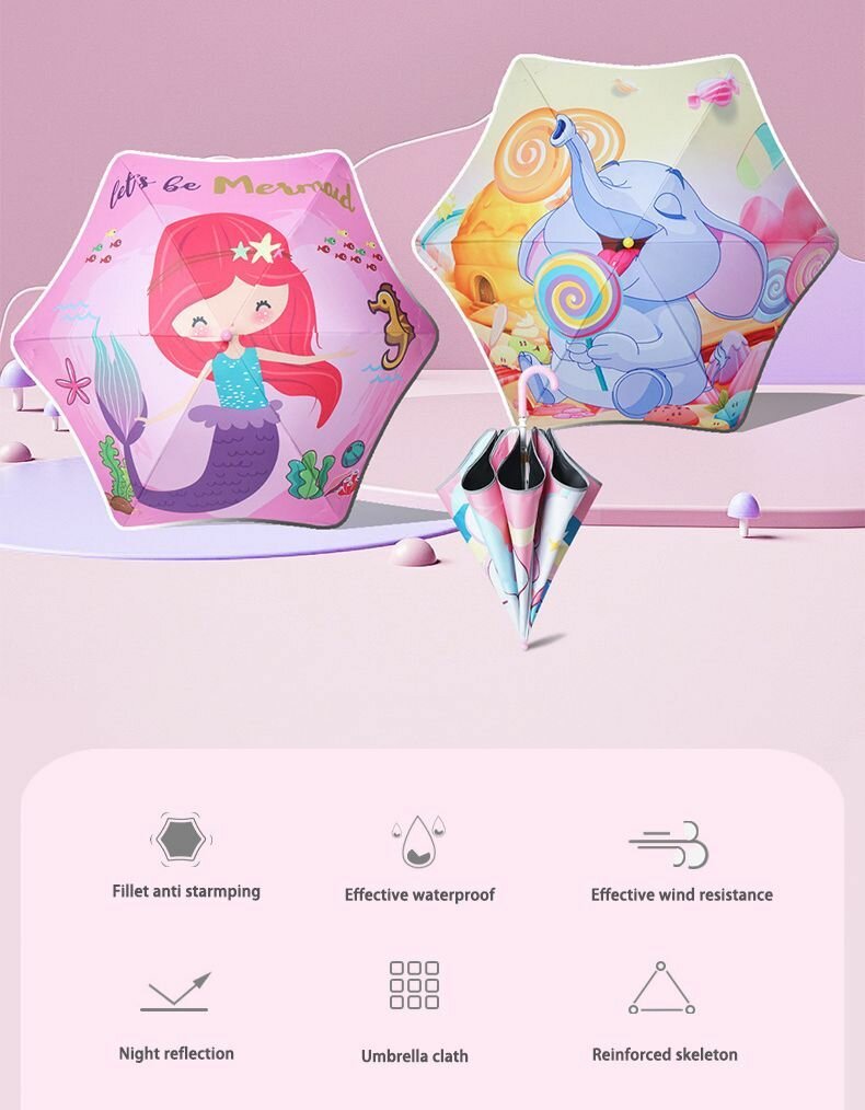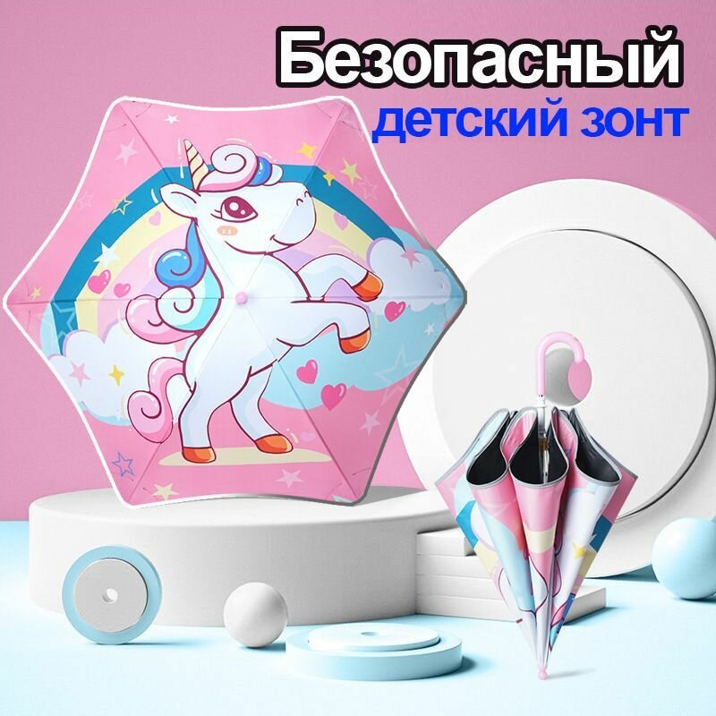 Зонт детский безопасный с закругленными краями светоотражающий. Умный зонт для девочек JUEL интересное: