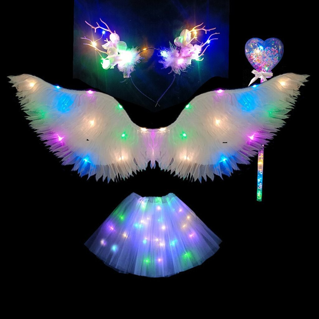 Купить "Крылья Ангела" - набор светящихся украшений на спину, крылья, юбка, ободок и волшебная палочка. Белый