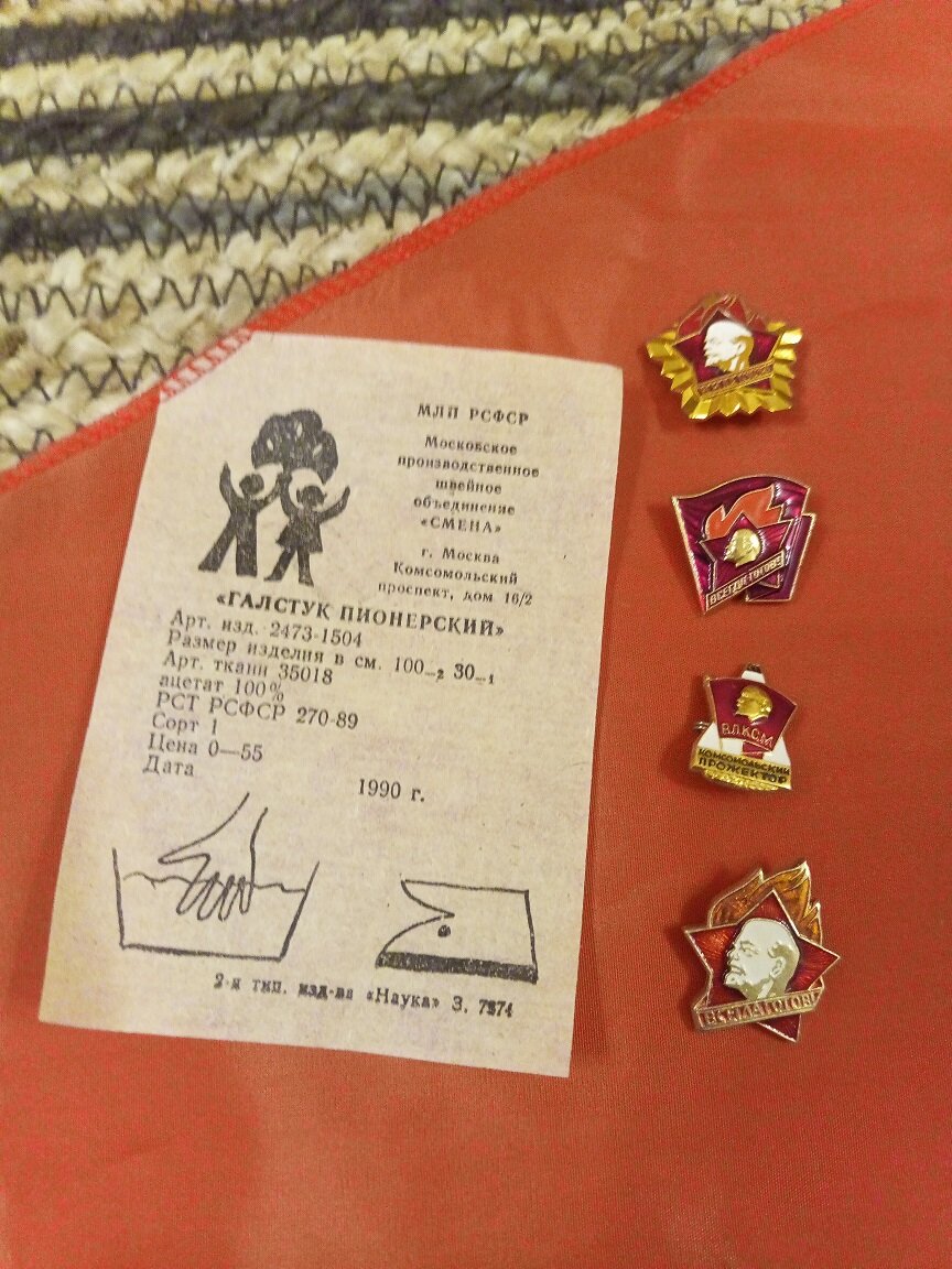 Настоящий пионерский галстук из СССР+ значок в подарок интересное: