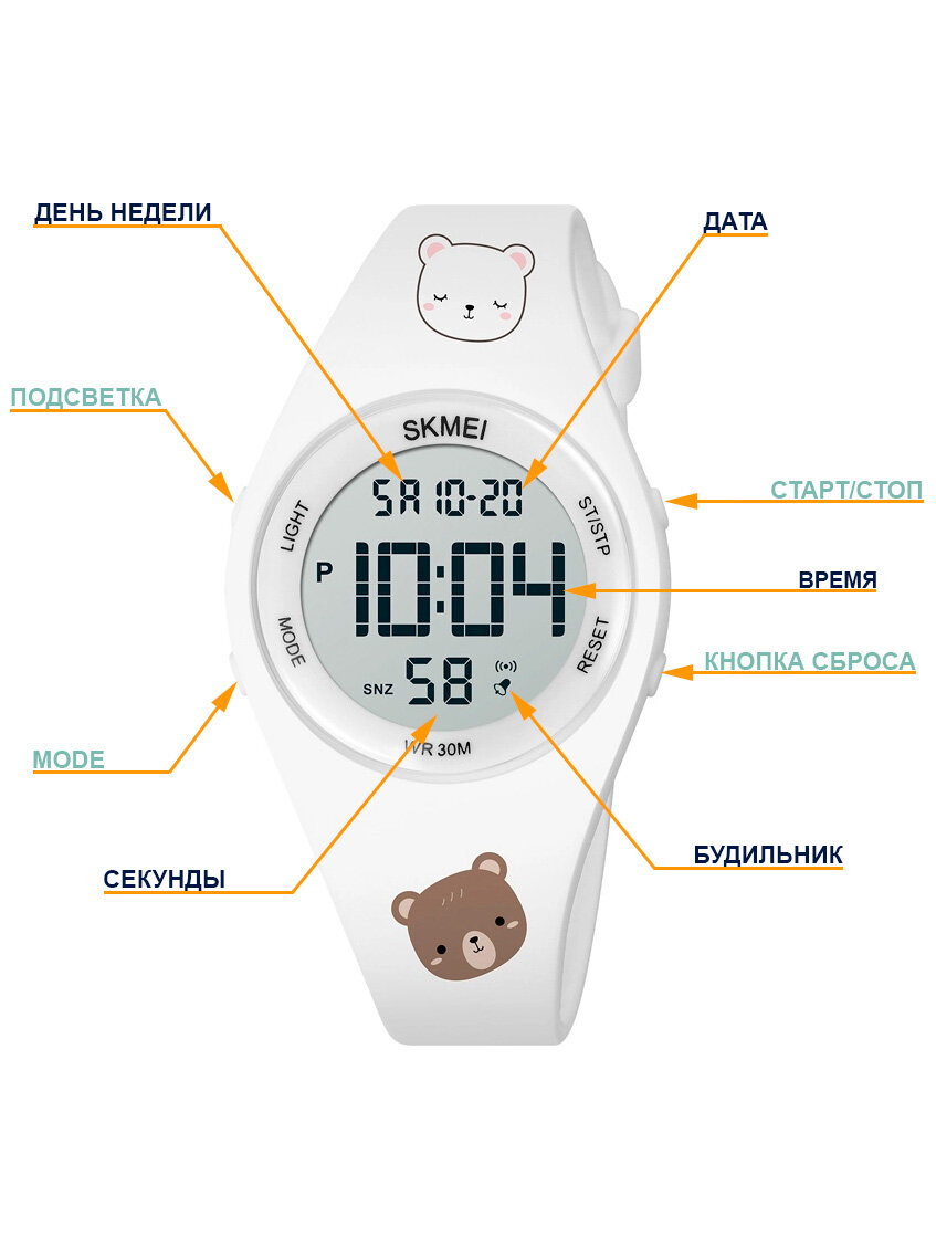 Часы наручные детские электронные SKMEI круглые, с секундомером и будильником интересное: