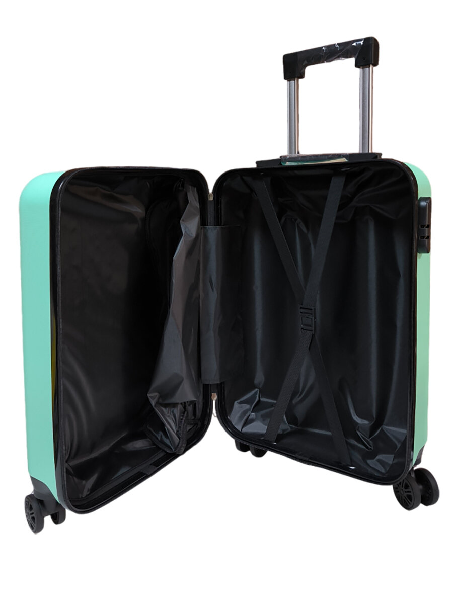 СохранитьДорожный чемодан детский на колесиках, ручная кладь размера XS арт.704 Кот в круге, бирюзовый интересное: